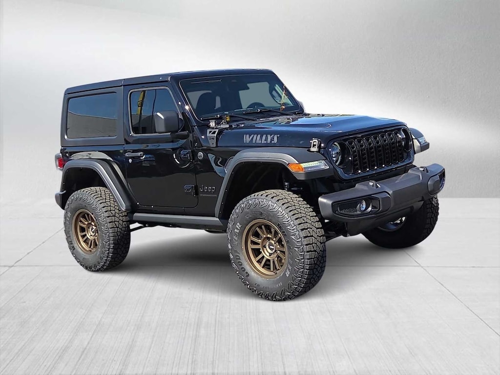 This Jeep comes with:Quick Order Package 22W Willys (4-Wheel Drive Swing Gate Decal, 7 & 4 Pin Wiring Harness, 97 MPH Vehicle Max Speed Calibration, Advanced Brake Assist, Automatic Headlamps, Auxiliary Switches, Black Grille, Class II Receiver Hitch, Conventional Differential Front Axle, Corning Gorilla Glass, Dana M210 Wide HD Tube Front Axle, Dana M220 Wide Rear Axle, Daytime Running Lamps LED Accents, Deep Tint Sunscreen Windows, E-Locker Rear Axle, Enhanced Adaptive Cruise Control, Front LED Fog Lamps, Full Speed Forward Collision Warning Plus, Injection Molded Black Rear Bumper, LED Premium Reflector Headlamps, Mold In Color Bumper w/Gloss Black, Molded in Color Rubicon Highline Flare, MOPAR All-Weather Floor Mats, Off-Road Plus Mode, Power Heated Mirrors, Premium Wrapped Steering Wheel, Security Alarm, Sun Visors w/Illuminated Vanity Mirrors, Wheels: 17 x 7.5 Painted Black, Willys Suspension, and Willys Hood Decal), 110 MPH Vehicle Max Speed Calibration, 4-Wheel Disc Brakes, 8 Speakers, ABS brakes, Air Conditioning, AM/FM radio: SiriusXM, Apple CarPlay/Android Auto, Aux Battery, Black 3-Piece Hard Top, Brake assist, Cloth Low-Back Bucket Seats, Compass, Delay-off headlights, Driver door bin, Driver vanity mirror, Dual front impact airbags, Dual front side impact airbags, Electronic Stability Control, Freedom Panel Storage Bag, Front anti-roll bar, Front Bucket Seats, Front Center Armrest w/Storage, Front fog lights, Front reading lights, Illuminated entry, Integrated roll-over protection, Low tire pressure warning, Non-Lock Fuel Cap w/o Discriminator, Normal Duty Suspension, Occupant sensing airbag, Outside temperature display, Overhead airbag, Panic alarm, ParkView Rear Back-Up Camera, Passenger door bin, Passenger vanity mirror, Power steering, Power windows, Radio data system, Radio: Uconnect 5 w/12.3 Display, Rear anti-roll bar, Rear reading lights, Rear Window Defroster, Rear Window Wiper/Washer, Remote keyless entry, Speed control, Steering wheel mounted audio controls, Stop-Start Dual Battery System, Tachometer, Telescoping steering wheel, Tilt steering wheel, Traction control, Trip computer, Variably intermittent wipers, and Wheels: 17 x 7.5 Black Steel Styled. Prices do not include Protection Package + includes Vehicle Tint at $599, Door Edge Guards at $399, Wheel Locks at $199, PermaPlate at $700, LoJack at $1,199 and Etch at $899. Price does not include $699 Dealer Documentation Fee, taxes, and license fee. Price includes: $2000 - 2025 National Retail Bonus Cash . Exp. 11/03/2025