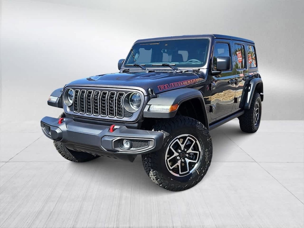 This Jeep comes with:Convenience Group (Heated Front Seats, Heated Steering Wheel, and Universal Garage Door Opener), Quick Order Package 24R Rubicon, Safety Group (Auto High Beam Headlamp Control, Blind Spot & Cross Path Detection, and ParkSense Rear Park Assist System), Technology Group (12.3 Touchscreen Display, 4G LTE Wi-Fi Hot Spot, Apple CarPlay, Auto-Dimming Rear-View Mirror, Connected Travel & Traffic Services, Connectivity - US/Canada, Google Android Auto, GPS Navigation, HD Radio, Integrated Off-Road Camera, Integrated Voice Command w/Bluetooth, Radio: Uconnect 5 Nav w/12.3 Display, SiriusXM Radio Service, and SiriusXM w/360L), 4-Wheel Disc Brakes, 4.10 Rear Axle Ratio, 8 Speakers, 97 MPH Vehicle Max Speed Calibration, ABS brakes, Air Conditioning, Alloy wheels, Alpine Premium Audio System, AM/FM radio: SiriusXM, Apple CarPlay/Android Auto, Automatic temperature control, Aux Battery, Auxiliary Switches, Black 3-Piece Hard Top, Brake assist, Class II Receiver Hitch, Cloth Low-Back Bucket Seats, Compass, Delay-off headlights, Driver door bin, Driver vanity mirror, Dual front impact airbags, Dual front side impact airbags, Electronic Stability Control, Emergency communication system: Jeep Connect, Freedom Panel Storage Bag, Front anti-roll bar, Front Bucket Seats, Front Center Armrest w/Storage, Front dual zone A/C, Front fog lights, Front License Plate Bracket (DISC), Front reading lights, Fully automatic headlights, Heated door mirrors, Illuminated entry, Integrated roll-over protection, Jeep Trail Rated Kit, Low tire pressure warning, MOPAR All-Weather Floor Mats, Non-Lock Fuel Cap w/o Discriminator, Occupant sensing airbag, Outside temperature display, Overhead airbag, Panic alarm, ParkView Rear Back-Up Camera, Passenger door bin, Passenger vanity mirror, Performance Suspension, Power door mirrors, Power steering, Power windows, Radio data system, Radio: Uconnect 5 w/12.3 Display, Rear anti-roll bar, Rear reading lights, Rear Window Defroster, Rear Window Wiper/Washer, Remote keyless entry, Security system, Speed control, Split folding rear seat, Steering wheel mounted audio controls, Stop-Start Dual Battery System, Tachometer, Telescoping steering wheel, Tilt steering wheel, Traction control, Trip computer, Variably intermittent wipers, Voltmeter, and Wheels: 17 x 7.5 Machined/Painted Black. Prices do not include Protection Package + includes Vehicle Tint at $599, Door Edge Guards at $399, Wheel Locks at $199, PermaPlate at $700, LoJack at $1,199 and Etch at $899. Price does not include $699 Dealer Documentation Fee, taxes, and license fee. Price includes: $2500 - 2025 National Retail Bonus Cash . Exp. 09/30/2025