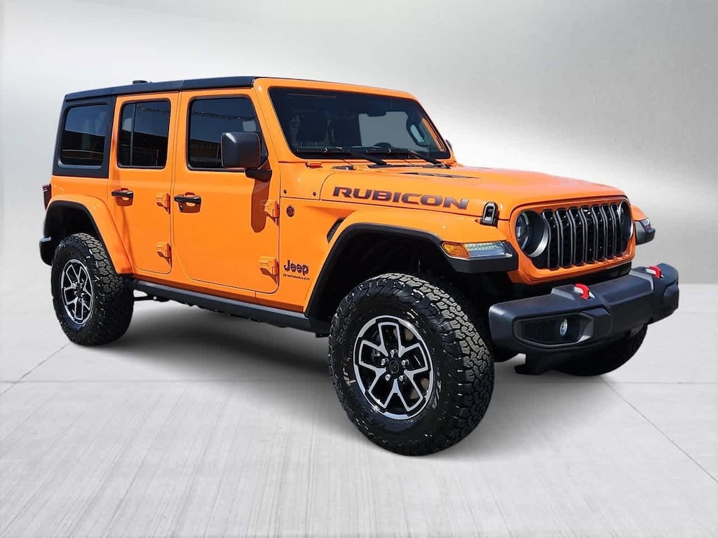 This Jeep comes with:Convenience Group (Heated Front Seats, Heated Steering Wheel, and Universal Garage Door Opener), Quick Order Package 24R Rubicon, Safety Group (Auto High Beam Headlamp Control, Blind Spot & Cross Path Detection, and ParkSense Rear Park Assist System), Technology Group (12.3 Touchscreen Display, 4G LTE Wi-Fi Hot Spot, Apple CarPlay, Auto-Dimming Rear-View Mirror, Connected Travel & Traffic Services, Connectivity - US/Canada, Google Android Auto, GPS Navigation, HD Radio, Integrated Off-Road Camera, Integrated Voice Command w/Bluetooth, Radio: Uconnect 5 Nav w/12.3 Display, SiriusXM Radio Service, and SiriusXM w/360L), 4-Wheel Disc Brakes, 4.10 Rear Axle Ratio, 8 Speakers, 97 MPH Vehicle Max Speed Calibration, ABS brakes, Air Conditioning, Alloy wheels, Alpine Premium Audio System, AM/FM radio: SiriusXM, Apple CarPlay/Android Auto, Automatic temperature control, Aux Battery, Auxiliary Switches, Black 3-Piece Hard Top, Body Color Rubicon Highline Flare, Brake assist, Class II Receiver Hitch, Cloth Low-Back Bucket Seats, Compass, Delay-off headlights, Driver door bin, Driver vanity mirror, Dual front impact airbags, Dual front side impact airbags, Electronic Stability Control, Emergency communication system: Jeep Connect, Freedom Panel Storage Bag, Front anti-roll bar, Front Bucket Seats, Front Center Armrest w/Storage, Front dual zone A/C, Front fog lights, Front License Plate Bracket (DISC), Front reading lights, Fully automatic headlights, Heated door mirrors, Illuminated entry, Integrated roll-over protection, Jeep Trail Rated Kit, Low tire pressure warning, MOPAR All-Weather Floor Mats, Non-Lock Fuel Cap w/o Discriminator, Occupant sensing airbag, Outside temperature display, Overhead airbag, Panic alarm, ParkView Rear Back-Up Camera, Passenger door bin, Passenger vanity mirror, Performance Suspension, Power door mirrors, Power steering, Power windows, Radio data system, Radio: Uconnect 5 w/12.3 Display, Rear anti-roll bar, Rear reading lights, Rear Window Defroster, Rear Window Wiper/Washer, Remote keyless entry, Security system, Speed control, Split folding rear seat, Steering wheel mounted audio controls, Stop-Start Dual Battery System, Tachometer, Telescoping steering wheel, Tilt steering wheel, Traction control, Trip computer, Variably intermittent wipers, Voltmeter, and Wheels: 17 x 7.5 Machined/Painted Black. Prices do not include Protection Package + includes Vehicle Tint at $599, Door Edge Guards at $399, Wheel Locks at $199, PermaPlate at $700, LoJack at $1,199 and Etch at $899. Price does not include $699 Dealer Documentation Fee, taxes, and license fee. Price includes: $1500 - 2025 National Bonus Cash . Exp. 12/01/2025 $2500 - 2025 National Retail Bonus Cash . Exp. 12/01/2025