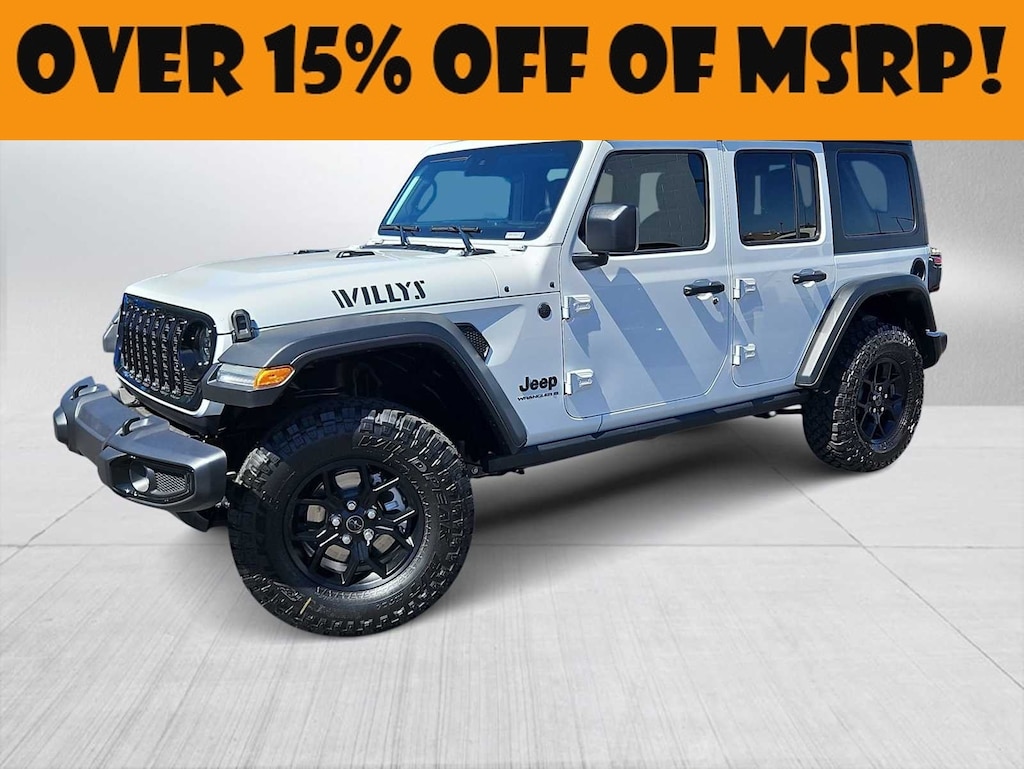 $9,250 off MSRP! Bright White Clearcoat 2025 Jeep Wrangler Willys 3.6L V6 24V VVT 8-Speed Automatic 4WD