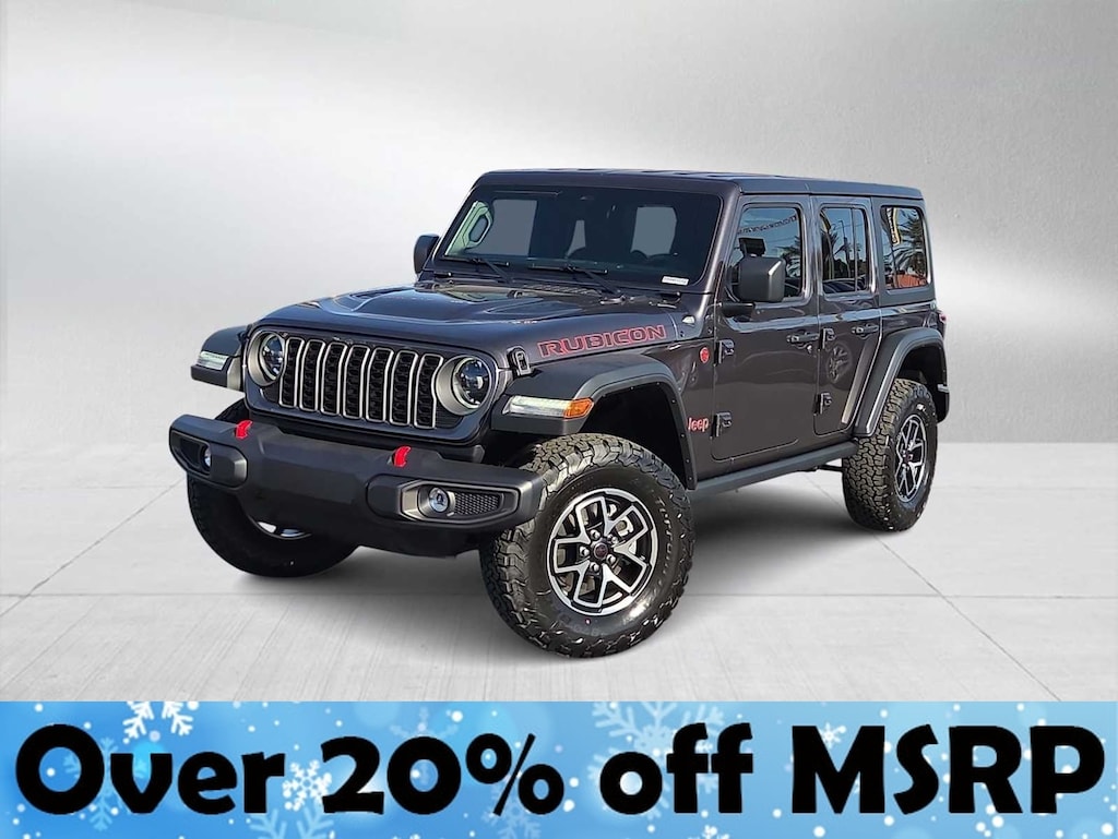This Jeep comes with:Quick Order Package 22R Rubicon, 4-Wheel Disc Brakes, 4.10 Rear Axle Ratio, 4G LTE Wi-Fi Hot Spot, 8 Speakers, 97 MPH Vehicle Max Speed Calibration, ABS brakes, Air Conditioning, Alloy wheels, AM/FM radio: SiriusXM, Apple CarPlay, Apple CarPlay/Android Auto, Automatic temperature control, Aux Battery, Auxiliary Switches, Black 3-Piece Hard Top, Brake assist, Class II Receiver Hitch, Cloth Low-Back Bucket Seats, Compass, Connectivity - US/Canada, Delay-off headlights, Driver door bin, Driver vanity mirror, Dual front impact airbags, Dual front side impact airbags, Electronic Stability Control, Emergency communication system: Jeep Connect, Freedom Panel Storage Bag, Front anti-roll bar, Front Bucket Seats, Front Center Armrest w/Storage, Front dual zone A/C, Front fog lights, Front License Plate Bracket (DISC), Front reading lights, Fully automatic headlights, Google Android Auto, Heated door mirrors, Illuminated entry, Integrated roll-over protection, Jeep Trail Rated Kit, Low tire pressure warning, MOPAR All-Weather Floor Mats, Non-Lock Fuel Cap w/o Discriminator, Occupant sensing airbag, Outside temperature display, Overhead airbag, Panic alarm, ParkView Rear Back-Up Camera, Passenger door bin, Passenger vanity mirror, Performance Suspension, Power door mirrors, Power steering, Power windows, Radio data system, Radio: Uconnect 5 w/12.3 Display, Rear anti-roll bar, Rear reading lights, Rear Window Defroster, Rear Window Wiper/Washer, Remote keyless entry, Security system, Speed control, Split folding rear seat, Steering wheel mounted audio controls, Stop-Start Dual Battery System, Tachometer, Telescoping steering wheel, Tilt steering wheel, Traction control, Trip computer, Variably intermittent wipers, Voltmeter, and Wheels: 17 x 7.5 Machined/Painted Black. Prices do not include Protection Package + includes Vehicle Tint at $599, Door Edge Guards at $399, Wheel Locks at $199, PermaPlate at $700, LoJack at $1,199 and Etch at $899. Price does not include $699 Dealer Documentation Fee, taxes, and license fee. Price includes: $1500 - 2025 National Bonus Cash . Exp. 01/05/2026 $2000 - 2025 National Holiday Select Inventory Bonus Cash. Exp. 01/05/2026 $2500 - 2025 National Retail Bonus Cash . Exp. 01/05/2026