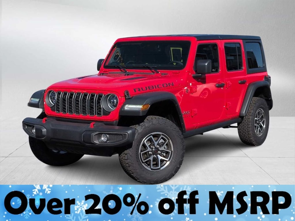 This Jeep comes with:Convenience Group (Heated Front Seats, Heated Steering Wheel, and Universal Garage Door Opener), Quick Order Package 24R Rubicon, Safety Group (Auto High Beam Headlamp Control, Blind Spot & Cross Path Detection, and ParkSense Rear Park Assist System), Technology Group (12.3 Touchscreen Display, 4G LTE Wi-Fi Hot Spot, Apple CarPlay, Auto-Dimming Rear-View Mirror, Connected Travel & Traffic Services, Connectivity - US/Canada, Google Android Auto, GPS Navigation, HD Radio, Integrated Off-Road Camera, Integrated Voice Command w/Bluetooth, Radio: Uconnect 5 Nav w/12.3 Display, SiriusXM Radio Service, and SiriusXM w/360L), 4-Wheel Disc Brakes, 4.10 Rear Axle Ratio, 8 Speakers, 97 MPH Vehicle Max Speed Calibration, ABS brakes, Air Conditioning, Alloy wheels, Alpine Premium Audio System, AM/FM radio: SiriusXM, Apple CarPlay/Android Auto, Automatic temperature control, Aux Battery, Auxiliary Switches, Black 3-Piece Hard Top, Brake assist, Class II Receiver Hitch, Cloth Low-Back Bucket Seats, Compass, Delay-off headlights, Driver door bin, Driver vanity mirror, Dual front impact airbags, Dual front side impact airbags, Electronic Stability Control, Emergency communication system: Jeep Connect, Freedom Panel Storage Bag, Front anti-roll bar, Front Bucket Seats, Front Center Armrest w/Storage, Front dual zone A/C, Front fog lights, Front License Plate Bracket (DISC), Front reading lights, Fully automatic headlights, Heated door mirrors, Illuminated entry, Integrated roll-over protection, Jeep Trail Rated Kit, Low tire pressure warning, MOPAR All-Weather Floor Mats, Non-Lock Fuel Cap w/o Discriminator, Occupant sensing airbag, Outside temperature display, Overhead airbag, Panic alarm, ParkView Rear Back-Up Camera, Passenger door bin, Passenger vanity mirror, Performance Suspension, Power door mirrors, Power steering, Power windows, Radio data system, Radio: Uconnect 5 w/12.3 Display, Rear anti-roll bar, Rear reading lights, Rear Window Defroster, Rear Window Wiper/Washer, Remote keyless entry, Security system, Speed control, Split folding rear seat, Steering wheel mounted audio controls, Stop-Start Dual Battery System, Tachometer, Telescoping steering wheel, Tilt steering wheel, Traction control, Trip computer, Variably intermittent wipers, Voltmeter, and Wheels: 17 x 7.5 Machined/Painted Black. Prices do not include Protection Package + includes Vehicle Tint at $599, Door Edge Guards at $399, Wheel Locks at $199, PermaPlate at $700, LoJack at $1,199 and Etch at $899. Price does not include $699 Dealer Documentation Fee, taxes, and license fee. Price includes: $1500 - 2025 National Bonus Cash . Exp. 01/05/2026 $2000 - 2025 National Holiday Select Inventory Bonus Cash. Exp. 01/05/2026 $2000 - 2025 National Select Inventory Bonus Cash. Exp. 01/05/2026 $2500 - 2025 National Retail Bonus Cash . Exp. 01/05/2026