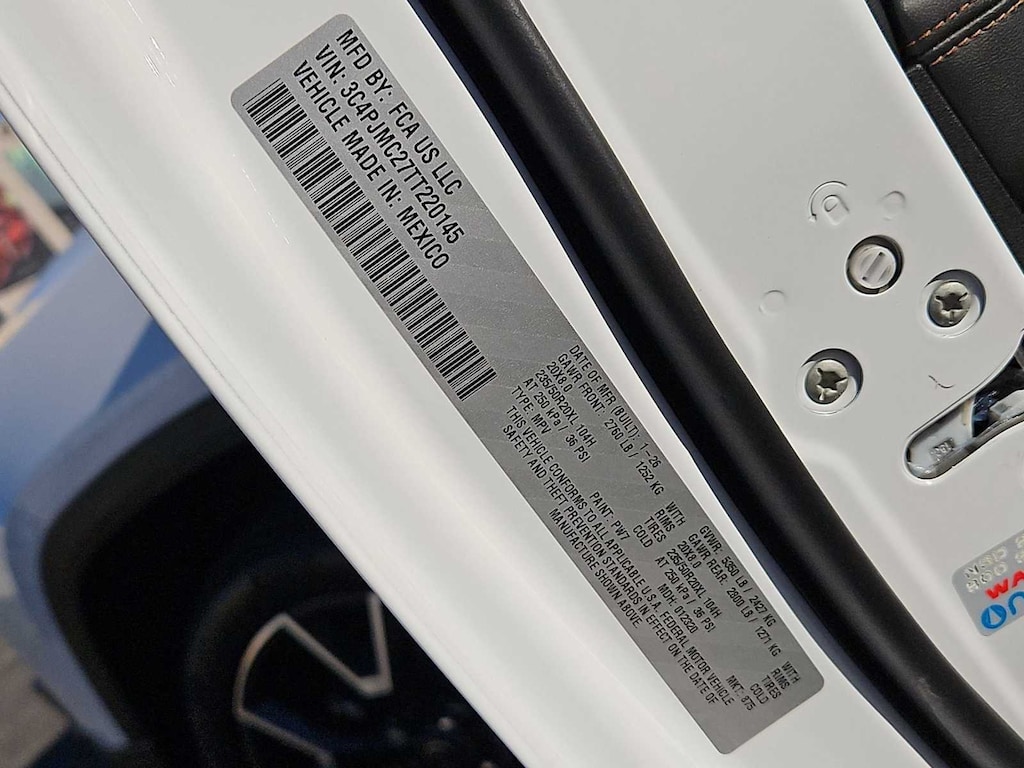 This Jeep comes with:Advanced Pro Tech Group (Auto-Dimming Exterior Driver Mirror, Front Camera Washer, Heated Second Row Seats, ParkSense Automated Parking System, Rear Back Up Camera Washer, Rearview Autodim Digital Display Mirror, Surround View Camera System, Ventilated Front Seats, and Windshield Wiper De-Icer), Quick Order Package 23Q Overland, Two Tone Paint Group, 1.6L I4, 10 Speakers, 4-Wheel Disc Brakes, 4.16 Final Drive Ratio, 4G LTE Wi-Fi Hot Spot, ABS brakes, Air Conditioning, Alloy wheels, AM/FM radio: SiriusXM with 360L, Apple CarPlay, Apple CarPlay/Android Auto, Audio memory, Auto High-beam Headlights, Auto-dimming Rear-View mirror, Automatic temperature control, Brake assist, Compass, Delay-off headlights, Driver door bin, Driver vanity mirror, Dual front impact airbags, Dual front side impact airbags, Electronic Stability Control, Emergency communication system, Four wheel independent suspension, Front anti-roll bar, Front Bucket Seats, Front Center Armrest, Front dual zone A/C, Front fog lights, Front License Plate Bracket, Front reading lights, Fully automatic headlights, Garage door transmitter, Global Telematics Box Module (TBM), Gloss Black Mirrors, Gloss Black Painted Roof, Google Android Auto, GPS Antenna Input, Heated door mirrors, Heated Exterior Mirrors, Heated front seats, Heated steering wheel, HVAC memory, Illuminated entry, Knee airbag, Low tire pressure warning, Memory seat, Navigation System, Occupant sensing airbag, Outside temperature display, Overhead airbag, Overhead console, Panic alarm, ParkView Rear Back-Up Camera, Passenger door bin, Passenger vanity mirror, Power door mirrors, Power driver seat, Power Liftgate, Power moonroof, Power passenger seat, Power steering, Power windows, Radio data system, Radio: Uconnect 5 Nav with 12.3 Display, Rain sensing wipers, Rear anti-roll bar, Rear reading lights, Rear seat center armrest, Rear side impact airbag, Rear window defroster, Rear window wiper, Remote keyless entry, Security system, SiriusXM with 360L, Speed control, Speed-sensing steering, Split folding rear seat, Spoiler, Steering wheel mounted audio controls, Tachometer, Telescoping steering wheel, Tilt steering wheel, Traction control, Trip computer, Turn signal indicator mirrors, Unique Capri Leatherette Perforated Seats, US/Canada Connectivity, Variably intermittent wipers, Voltmeter, and Wheels: 20 x 8 Machine Face Painted Aluminum. Prices do not include Protection Package + includes Vehicle Tint at $599, Door Edge Guards at $399, Wheel Locks at $199, PermaPlate at $700, LoJack at $1,199 and Etch at $899. Price does not include $699 Dealer Documentation Fee, taxes, and license fee. Price includes: $1000 - 2026 National Retail Bonus Cash . Exp. 04/30/2026