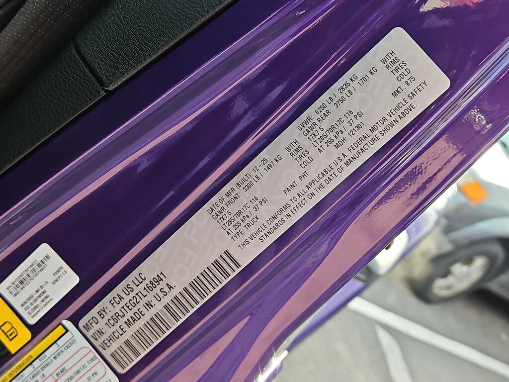 This Jeep comes with:Convenience Group (Heated Front Seats, Heated Steering Wheel, Remote Start System, and Universal Garage Door Opener), Quick Order Package 24D Mojave, 110 Mph Vehicle Max Speed Calibration, 12.3 Touchscreen Display, 4-Wheel Disc Brakes, 4.10 Rear Axle Ratio, 4G LTE Wi-Fi Hot Spot, 8 Speakers, ABS brakes, Air Conditioning, Alexa Built-in, Alloy wheels, AM/FM radio: SiriusXM with 360L, Apple CarPlay, Apple CarPlay/Android Auto, Automatic temperature control, Body Color 3-Piece Hard Top, Body Color Rubicon Highline Flare, Brake assist, Compass, Connectivity - US/Canada, Delay-off headlights, Driver door bin, Driver vanity mirror, Dual front impact airbags, Dual front side impact airbags, Electronic Stability Control, Emergency communication system: Jeep Connect, For Details, Visit DriveUconnect.com, Freedom Panel Storage Bag, Front anti-roll bar, Front Bucket Seats, Front Center Armrest w/Storage, Front dual zone A/C, Front fog lights, Front License Plate Bracket, Front reading lights, Fully automatic headlights, Google Android Auto, Heated door mirrors, Heavy Duty Suspension with Gas Shocks, Illuminated entry, Integrated Center Stack Radio, Integrated roll-over protection, Low tire pressure warning, Manufacturers Statement of Origin, MOPAR Spray in Bedliner, Occupant sensing airbag, Outside temperature display, Overhead airbag, Panic alarm, Passenger door bin, Passenger vanity mirror, Power door mirrors, Power steering, Power windows, Premium Cloth Seats with Sport Bolsters, Radio data system, Radio: Uconnect 5 with 12.3 Display, Rear anti-roll bar, Rear reading lights, Rear Sliding Window, Rear Window Defroster, Remote keyless entry, Security system, SiriusXM Radio Service, SiriusXM with 360L, Speed control, Split folding rear seat, Steering wheel mounted audio controls, Tachometer, Telescoping steering wheel, Tilt steering wheel, Traction control, Trip computer, USB Host Flip, Variably intermittent wipers, Voltmeter, and Wheels: 17 x 7.5 Dark Gray PainteD. Prices do not include Protection Package + includes Vehicle Tint at $599, Door Edge Guards at $399, Wheel Locks at $199, PermaPlate at $700, LoJack at $1,199 and Etch at $899. Price does not include $699 Dealer Documentation Fee, taxes, and license fee. Price includes: $1000 - 2026 National Retail Bonus Cash . Exp. 04/30/2026