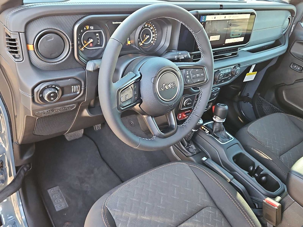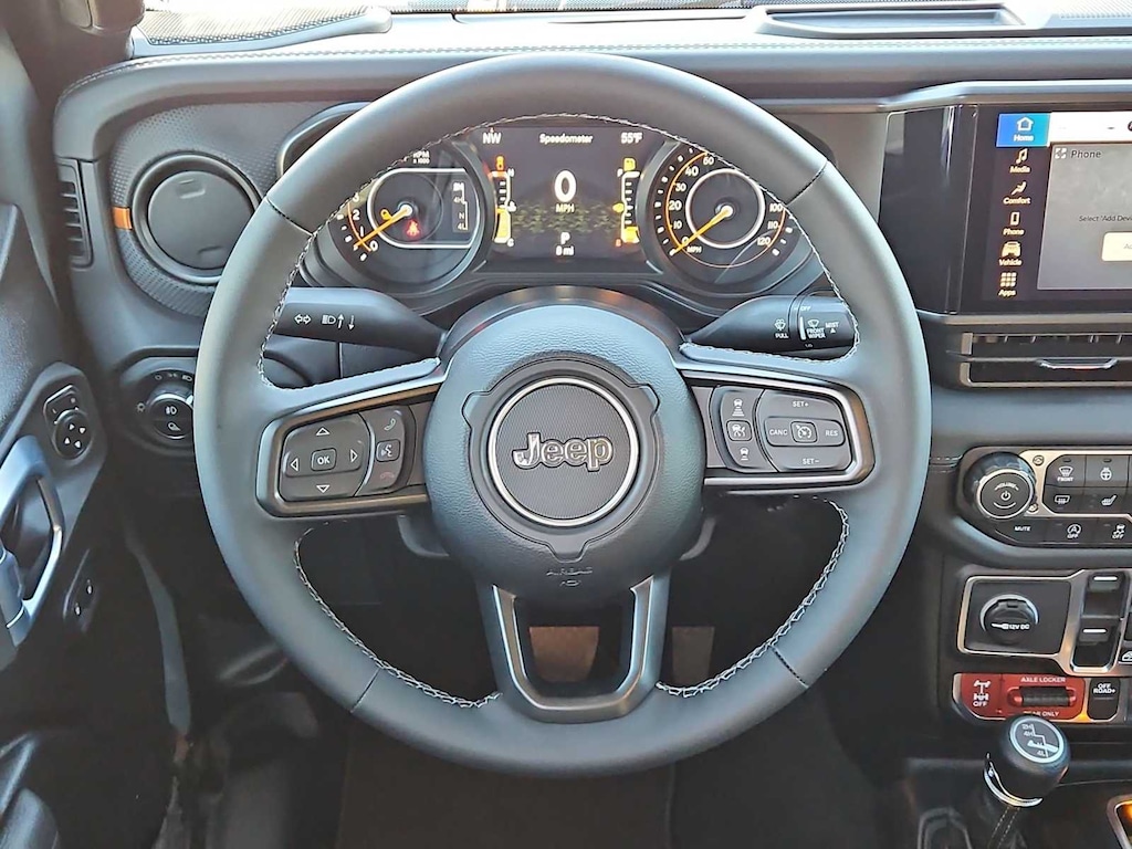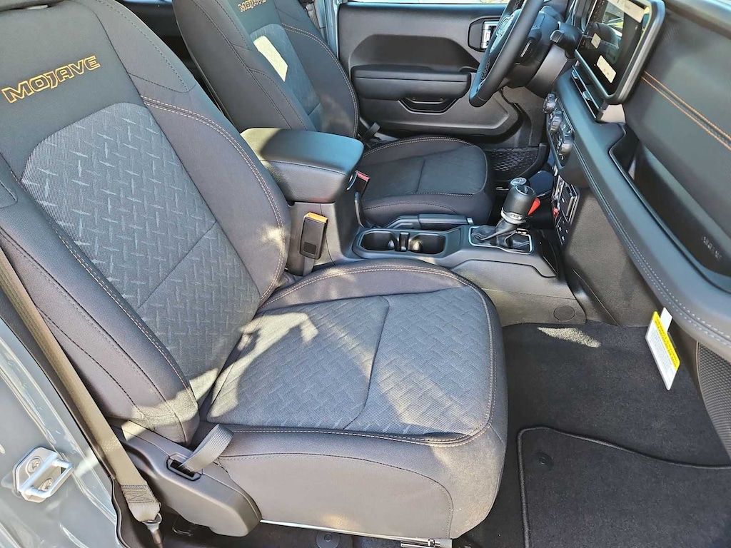 This Jeep comes with:Convenience Group (Heated Front Seats, Heated Steering Wheel, Remote Start System, and Universal Garage Door Opener), Quick Order Package 24D Mojave, 110 Mph Vehicle Max Speed Calibration, 12.3 Touchscreen Display, 4-Wheel Disc Brakes, 4.10 Rear Axle Ratio, 4G LTE Wi-Fi Hot Spot, 8 Speakers, ABS brakes, Air Conditioning, Alexa Built-in, Alloy wheels, AM/FM radio: SiriusXM with 360L, Apple CarPlay, Apple CarPlay/Android Auto, Automatic temperature control, Body Color 3-Piece Hard Top, Body Color Rubicon Highline Flare, Brake assist, Compass, Connectivity - US/Canada, Delay-off headlights, Driver door bin, Driver vanity mirror, Dual front impact airbags, Dual front side impact airbags, Electronic Stability Control, Emergency communication system: Jeep Connect, For Details, Visit DriveUconnect.com, Freedom Panel Storage Bag, Front anti-roll bar, Front Bucket Seats, Front Center Armrest w/Storage, Front dual zone A/C, Front fog lights, Front License Plate Bracket, Front reading lights, Fully automatic headlights, Google Android Auto, Heated door mirrors, Heavy Duty Suspension with Gas Shocks, Illuminated entry, Integrated Center Stack Radio, Integrated roll-over protection, Low tire pressure warning, Manufacturers Statement of Origin, Occupant sensing airbag, Outside temperature display, Overhead airbag, Panic alarm, Passenger door bin, Passenger vanity mirror, Power door mirrors, Power steering, Power windows, Premium Cloth Seats with Sport Bolsters, Radio data system, Radio: Uconnect 5 with 12.3 Display, Rear anti-roll bar, Rear reading lights, Rear Sliding Window, Rear Window Defroster, Remote keyless entry, Security system, SiriusXM Radio Service, SiriusXM with 360L, Speed control, Split folding rear seat, Steering wheel mounted audio controls, Tachometer, Telescoping steering wheel, Tilt steering wheel, Traction control, Trip computer, USB Host Flip, Variably intermittent wipers, Voltmeter, and Wheels: 17 x 7.5 Dark Gray PainteD. Prices do not include Protection Package + includes Vehicle Tint at $599, Door Edge Guards at $399, Wheel Locks at $199, PermaPlate at $700, LoJack at $1,199 and Etch at $899. Price does not include $699 Dealer Documentation Fee, taxes, and license fee.