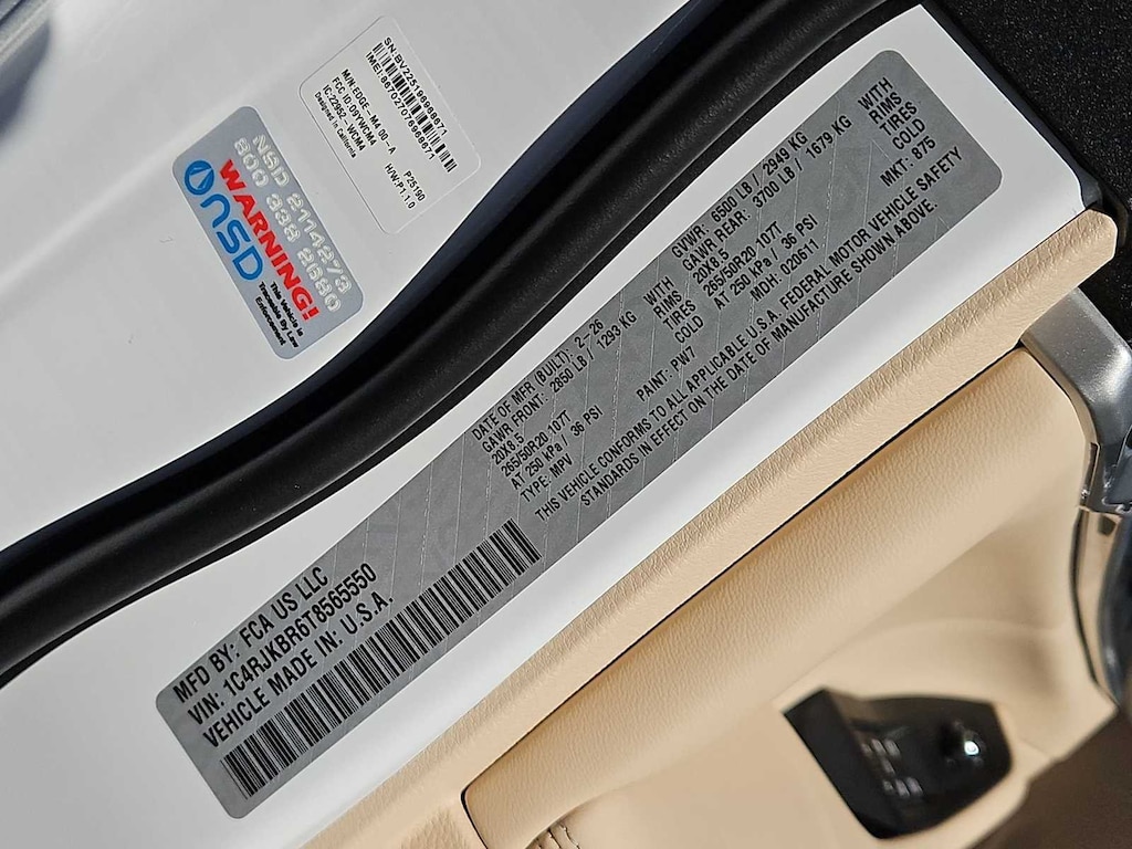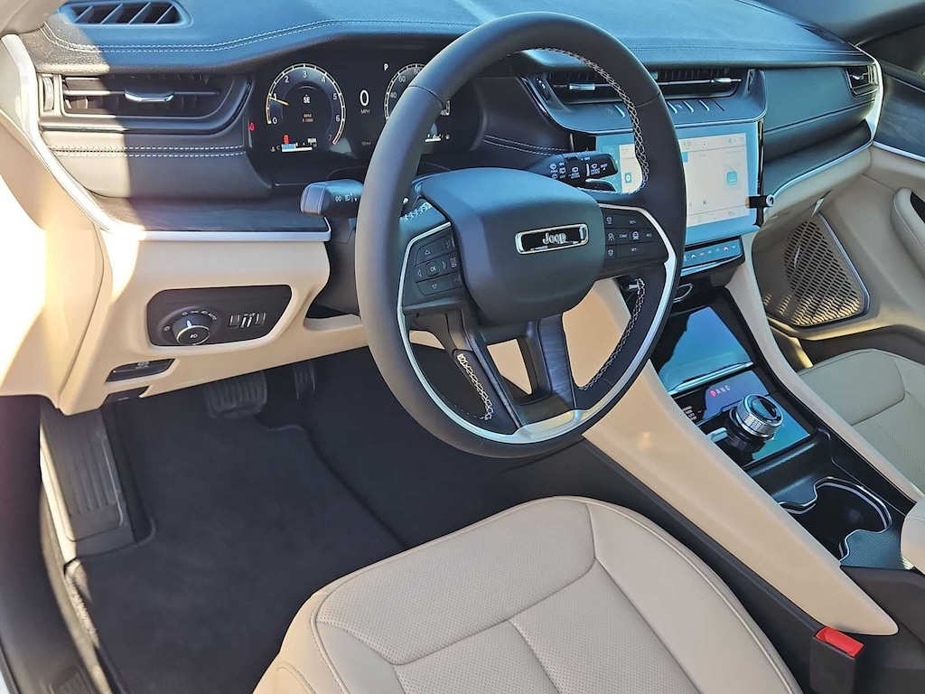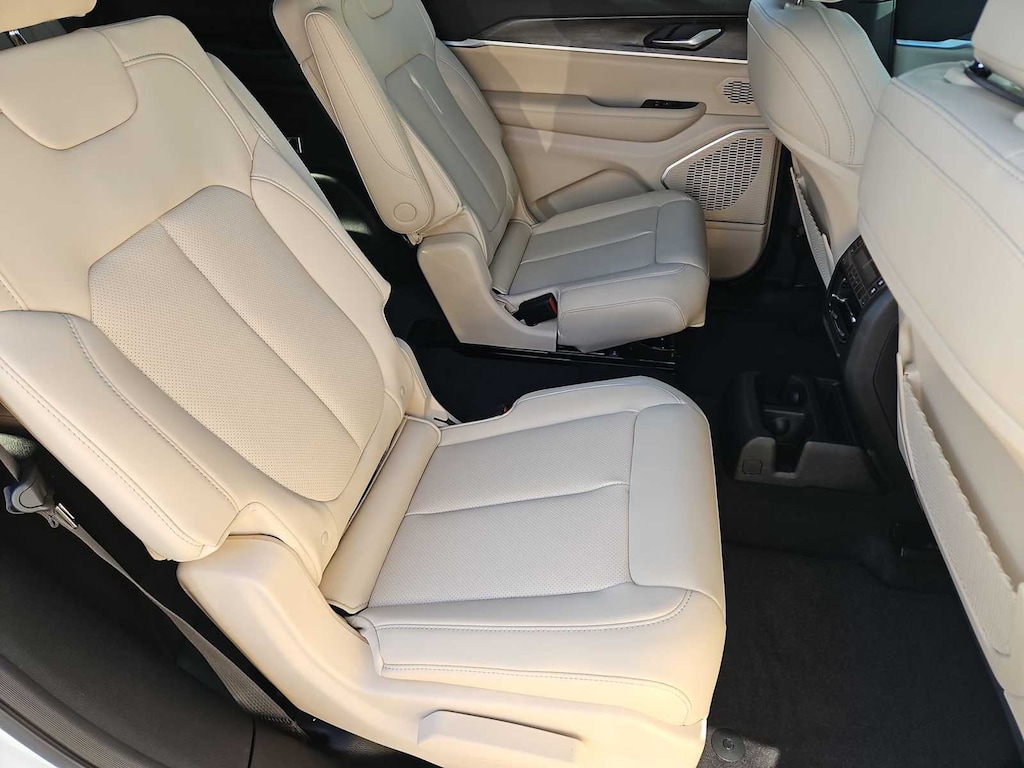 This Jeep comes with:Luxury Tech Group II (Auto-Dimming Exterior Driver Mirror, Capri Leatherette with Axis II Seats, Integrated Off-Road Camera, Memory Steering Column, ParkSense Front/Rear Park Assist with Stop, Passive Entry - Front/Rear Doors, Liftgate, Power Tilt/Telescope Steering Column, Rain Sensitive Windshield Wipers, Rear Back Up Camera Washer, Rearview Autodim Digital Display Mirror, Side Distance Warning, Surround View Camera System, and Wireless Charging Pad), Quick Order Package 2BE Limited, 10 Speakers, 3.70 Rear Axle Ratio, 3rd row seats: split-bench, 4-Wheel Disc Brakes, 4G LTE Wi-Fi Hot Spot, ABS brakes, Active Noise Control System, Air Conditioning, Alloy wheels, AM/FM radio: SiriusXM with 360L, Anti-whiplash front head restraints, Apple CarPlay, AppLink/Apple CarPlay and Android Auto, Audio memory, Auto High-beam Headlights, Automatic temperature control, Brake assist, Bumpers: body-color, Capri Leatherette Seats, Compass, Connectivity - US/Canada, Delay-off headlights, Disassociated Touchscreen Display, Driver door bin, Driver vanity mirror, Dual front impact airbags, Dual front side impact airbags, Dual-Pane Panoramic Sunroof, Electronic Stability Control, Emergency communication system, For Details, Visit DriveUconnect.com, Four wheel independent suspension, Front anti-roll bar, Front Bucket Seats, Front Center Armrest w/Storage, Front dual zone A/C, Front fog lights, Front License Plate Bracket, Front reading lights, Fully automatic headlights, Garage door transmitter, Global Telematics Box Module (TBM), Gloss Black Exterior Mirrors, Google Android Auto, GPS Antenna Input, Heated door mirrors, Heated Exterior Mirrors, Heated front seats, Heated rear seats, Heated steering wheel, Illuminated entry, Integrated Center Stack Radio, Integrated Voice Command with Bluetooth, Interior Rear Facing Camera, Knee airbag, Low tire pressure warning, Manual Fold Seatbacks, Manual Folding Exterior Mirrors, Memory seat, Navigation System, Normal Duty Suspension, Occupant sensing airbag, Outside temperature display, Overhead airbag, Overhead console, Panic alarm, ParkView Rear Back-Up Camera, Passenger door bin, Passenger vanity mirror, Power door mirrors, Power driver seat, Power Fold Seatbacks, Power Liftgate, Power passenger seat, Power steering, Power windows, Radio data system, Radio: Uconnect 5 Nav with 12.3 Display, Rear air conditioning, Rear anti-roll bar, Rear reading lights, Rear window defroster, Rear window wiper, Reclining 3rd row seat, Remote keyless entry, Security system, Speed control, Speed-Sensitive Wipers, Split folding rear seat, Spoiler, Steering wheel mounted audio controls, Tachometer, Telescoping steering wheel, Tilt steering wheel, Traction control, Trip computer, Turn signal indicator mirrors, USB Host Flip, Variably intermittent wipers, Voltmeter, Wheels: 18 x 8.0 Polished/Painted Aluminum, and Wheels: 20 x 8.5 Machined/Painted AluminuM. Prices do not include Protection Package + includes Vehicle Tint at $599, Door Edge Guards at $399, Wheel Locks at $199, PermaPlate at $700, LoJack at $1,199 and Etch at $899. Price does not include $699 Dealer Documentation Fee, taxes, and license fee.