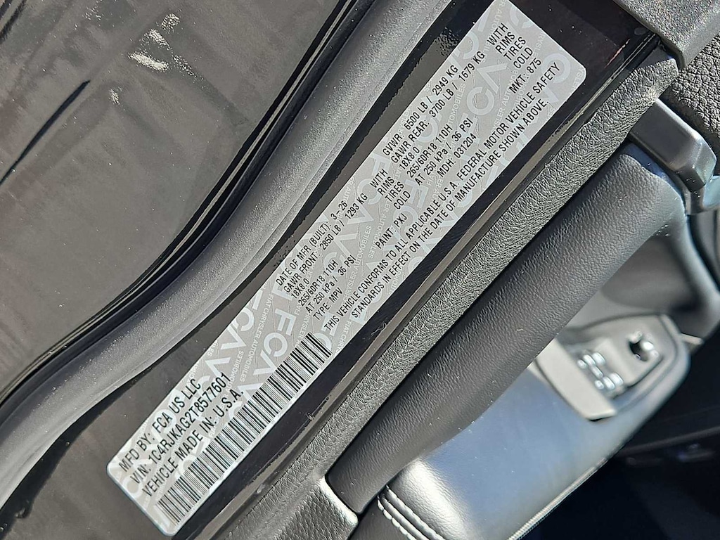 This Jeep comes with:Quick Order Package 22J Laredo X (115V Auxiliary Power Outlet, 3rd Row Charge-Only USB Ports, Heated Front Seats, Heated Steering Wheel, Power Liftgate, Power Sunroof, Rain Sensitive Windshield Wipers, Remote Start System, Selectable Tire Fill Alert, and Wireless Charging Pad), Trailer Tow Package (7 and 4 Pin Wiring Harness, Class IV Receiver Hitch, Dual Exhaust Tips, Heavy-Duty Engine Cooling, Rear Load Leveling Suspension, and Trailer Hitch Zoom), 2nd Row 60/40 Bench with Manual Tip/Slide, 2nd Row Seat Center Armrest/Cupholders, 3 Rear Seat Head Restraints, 3.45 Rear Axle Ratio, 3rd row seats: split-bench, 4-Wheel Disc Brakes, 4G LTE Wi-Fi Hot Spot, 6 Speakers, ABS brakes, Air Conditioning, Alloy wheels, AM/FM radio: SiriusXM, Anti-whiplash front head restraints, Apple CarPlay, AppLink/Apple CarPlay and Android Auto, Automatic temperature control, Brake assist, Bumpers: body-color, Center Rear 3-Point Seat Belt, Cloth Seats, Compass, Connectivity - US/Canada, Delay-off headlights, Disassociated Touchscreen Display, Driver door bin, Driver vanity mirror, Dual front impact airbags, Dual front side impact airbags, Electronic Stability Control, Emergency communication system, For Details, Visit DriveUconnect.com, Four wheel independent suspension, Front anti-roll bar, Front Bucket Seats, Front Center Armrest w/Storage, Front dual zone A/C, Front License Plate Bracket, Front reading lights, Fully automatic headlights, Global Telematics Box Module (TBM), Gloss Black Exterior Mirrors, Google Android Auto, GPS Antenna Input, Heated door mirrors, Heated Exterior Mirrors, Illuminated entry, Integrated Center Stack Radio, Integrated Voice Command with Bluetooth, Knee airbag, Low tire pressure warning, Manual Fold Seatbacks, Manual Folding Exterior Mirrors, Normal Duty Suspension, Occupant sensing airbag, Outside temperature display, Overhead airbag, Overhead console, Panic alarm, ParkView Rear Back-Up Camera, Passenger door bin, Passenger vanity mirror, Power door mirrors, Power driver seat, Power Fold Seatbacks, Power steering, Power windows, Radio data system, Radio: Uconnect 5 with 8.4 Display, Rear air conditioning, Rear anti-roll bar, Rear reading lights, Rear window defroster, Rear window wiper, Reclining 3rd row seat, Remote keyless entry, Security system, Speed control, Speed-Sensitive Wipers, Split folding rear seat, Spoiler, Steering wheel mounted audio controls, Tachometer, Telescoping steering wheel, Tilt steering wheel, Traction control, Trip computer, USB Host Flip, Variably intermittent wipers, Voltmeter, and Wheels: 18 x 8.0 Fully Painted AluminuM. Prices do not include Protection Package + includes Vehicle Tint at $599, Door Edge Guards at $399, Wheel Locks at $199, PermaPlate at $700, LoJack at $1,199 and Etch at $899. Price does not include $699 Dealer Documentation Fee, taxes, and license fee. Price includes: $1500 - 2026 National Retail Bonus Cash . Exp. 04/30/2026