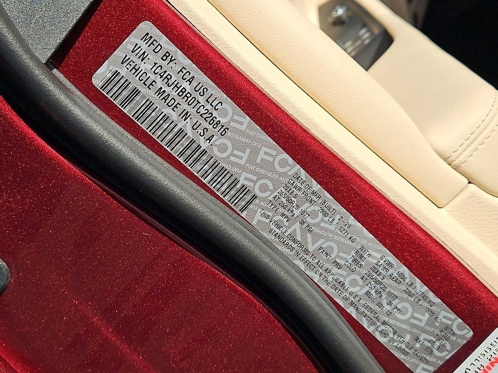 This Jeep comes with:Quick Order Package 2BE Limited, 4WD, 10 Speakers, 3.70 Rear Axle Ratio, 4-Wheel Disc Brakes, 4G LTE Wi-Fi Hot Spot, ABS brakes, Active Noise Control System, Air Conditioning, Alloy wheels, AM/FM radio: SiriusXM with 360L, Anti-whiplash front head restraints, Apple CarPlay, AppLink/Apple CarPlay and Android Auto, Audio memory, Auto High-beam Headlights, Automatic temperature control, Auxiliary Battery, Brake assist, Bumpers: body-color, Capri Leatherette Seats, Compass, Connectivity - US/Canada, Delay-off headlights, Disassociated Touchscreen Display, Driver door bin, Driver vanity mirror, Dual front impact airbags, Dual front side impact airbags, Dual-Pane Panoramic Sunroof, Electronic Stability Control, Emergency communication system, For Details, Visit DriveUconnect.com, Four wheel independent suspension, Front anti-roll bar, Front Bucket Seats, Front Center Armrest w/Storage, Front dual zone A/C, Front fog lights, Front License Plate Bracket, Front reading lights, Fully automatic headlights, Garage door transmitter, Global Telematics Box Module (TBM), Gloss Black Exterior Mirrors, Google Android Auto, GPS Antenna Input, Heated door mirrors, Heated Exterior Mirrors, Heated front seats, Heated rear seats, Heated steering wheel, Illuminated entry, Integrated Center Stack Radio, Integrated Voice Command with Bluetooth, Knee airbag, Low tire pressure warning, Manual Folding Exterior Mirrors, Memory seat, Navigation System, Normal Duty Suspension, Occupant sensing airbag, Outside temperature display, Overhead airbag, Overhead console, Panic alarm, ParkView Rear Back-Up Camera, Passenger door bin, Passenger vanity mirror, Power door mirrors, Power driver seat, Power Liftgate, Power passenger seat, Power steering, Power windows, Radio data system, Radio: Uconnect 5 Nav with 12.3 Display, Rear anti-roll bar, Rear reading lights, Rear window defroster, Rear window wiper, Remote keyless entry, Security system, Speed control, Speed-Sensitive Wipers, Split folding rear seat, Spoiler, Steering wheel mounted audio controls, Tachometer, Telescoping steering wheel, Tilt steering wheel, Traction control, Trip computer, Turn signal indicator mirrors, USB Host Flip, Variably intermittent wipers, Voltmeter, Wheels: 18 x 8.0 Polished/Painted Aluminum, and Wheels: 20 x 8.5 Machined/Painted AluminuM. Prices do not include Protection Package + includes Vehicle Tint at $599, Door Edge Guards at $399, Wheel Locks at $199, PermaPlate at $700, LoJack at $1,199 and Etch at $899. Price does not include $699 Dealer Documentation Fee, taxes, and license fee. Price includes: $1500 - 2026 National Retail Bonus Cash . Exp. 04/30/2026
