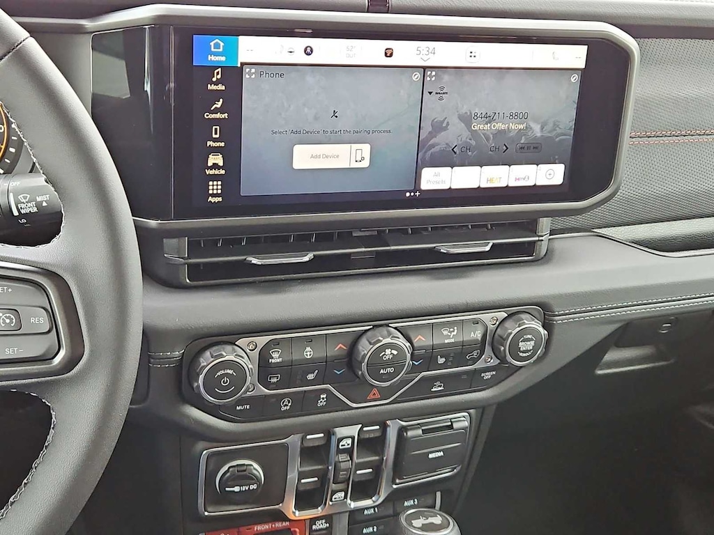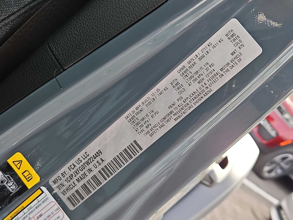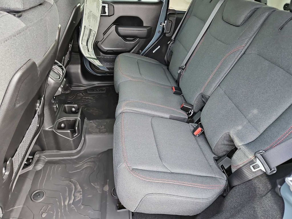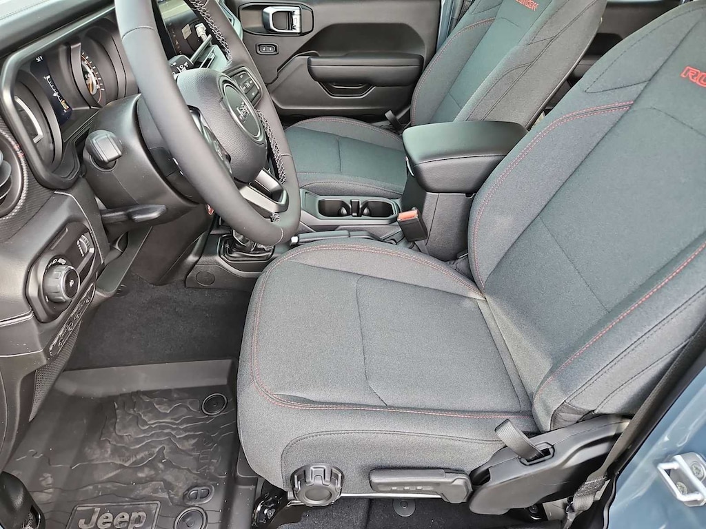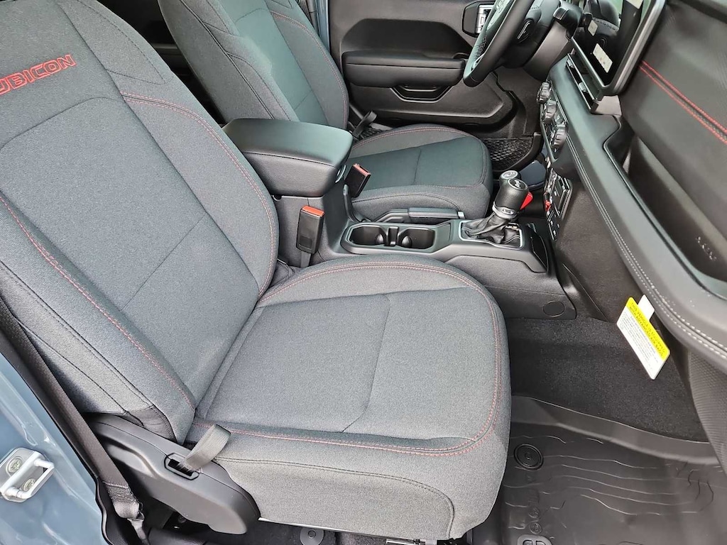 This Jeep comes with:Convenience Group (Heated Front Seats, Heated Steering Wheel, and Universal Garage Door Opener), Quick Order Package 24R Rubicon, Steel Performance Hood Package (Performance Hood), 12.3 Touchscreen Display, 4-Wheel Disc Brakes, 4.10 Rear Axle Ratio, 4G LTE Wi-Fi Hot Spot, 8 Speakers, ABS brakes, Air Conditioning, Alloy wheels, AM/FM radio: SiriusXM with 360L, Apple CarPlay, Apple CarPlay/Android Auto, Automatic temperature control, Aux Battery, Auxiliary Switches, Black 3-Piece Hard Top, Brake assist, Class II Receiver Hitch, Cloth Low-Back Bucket Seats, Compass, Connectivity - US/Canada, Delay-off headlights, Driver door bin, Driver vanity mirror, Dual front impact airbags, Dual front side impact airbags, Electronic Stability Control, Emergency communication system: Jeep Connect, For More Info, Call 800-643-2112, Freedom Panel Storage Bag, Front anti-roll bar, Front Bucket Seats, Front Center Armrest w/Storage, Front dual zone A/C, Front fog lights, Front License Plate Bracket, Front reading lights, Fully automatic headlights, Google Android Auto, Heated door mirrors, Illuminated entry, Integrated Center Stack Radio, Integrated roll-over protection, Jeep Trail Rated Kit, Low tire pressure warning, MOPAR All-Weather Floor Mats, No Soft Top, Non-Lock Fuel Cap Without Discriminator, Occupant sensing airbag, Outside temperature display, Overhead airbag, Panic alarm, ParkView Rear Back-Up Camera, Passenger door bin, Passenger vanity mirror, Performance Suspension, Power door mirrors, Power steering, Power windows, Radio data system, Radio: Uconnect 5 with 12.3 Display, Rear anti-roll bar, Rear reading lights, Rear Window Defroster, Rear Window Wiper/Washer, Remote keyless entry, Security system, SiriusXM Radio Service, SiriusXM with 360L, Speed control, Split folding rear seat, Steering wheel mounted audio controls, Stop-Start Dual Battery System, Tachometer, Telescoping steering wheel, Tilt steering wheel, Traction control, Trip computer, Variably intermittent wipers, Voltmeter, and Wheels: 17 x 7.5 Machined/Painted Black. Prices do not include Protection Package + includes Vehicle Tint at $599, Door Edge Guards at $399, Wheel Locks at $199, PermaPlate at $700, LoJack at $1,199 and Etch at $899. Price does not include $699 Dealer Documentation Fee, taxes, and license fee.