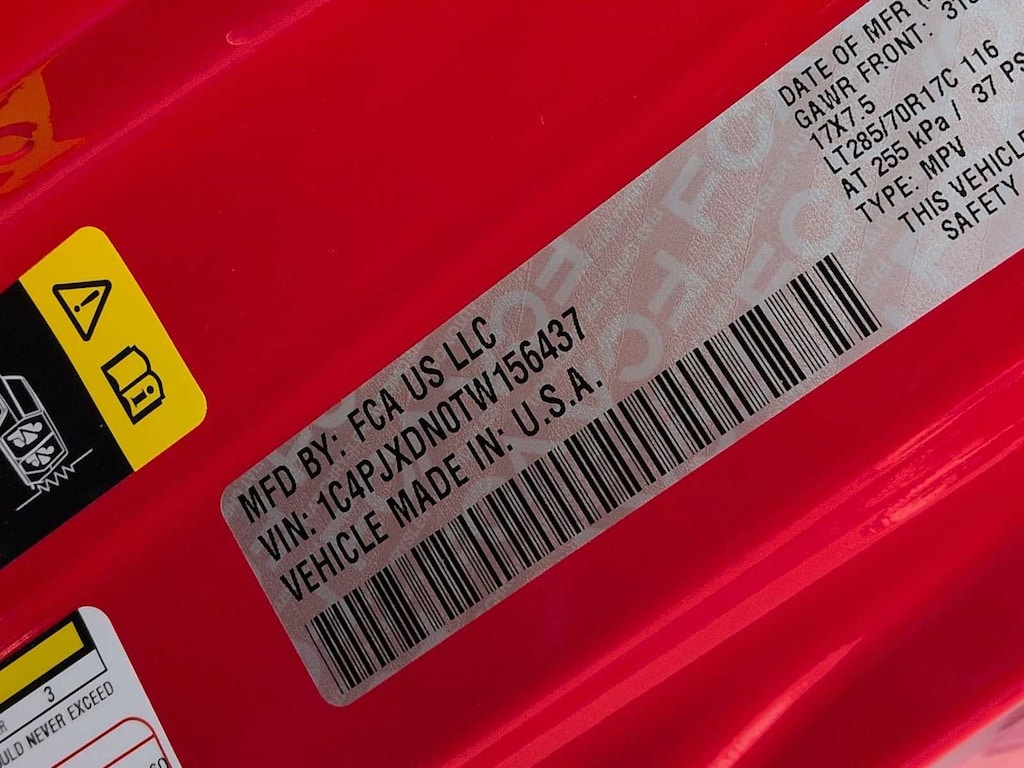 This Jeep comes with:ABS brakes, Compass, Electronic Stability Control, Illuminated entry, Low tire pressure warning, ParkView Rear Back-Up Camera, Remote keyless entry, Traction control, 12.3 Touchscreen Display, 3.45 Overall Top Gear Ratio, 4-Wheel Disc Brakes, 4G LTE Wi-Fi Hot Spot, 8 Speakers, Air Conditioning, AM/FM radio: SiriusXM with 360L, Apple CarPlay, Apple CarPlay/Android Auto, Aux Battery, Brake assist, Connectivity - US/Canada, Delay-off headlights, Driver door bin, Driver vanity mirror, Dual front impact airbags, Dual front side impact airbags, For More Info, Call 800-643-2112, Front anti-roll bar, Front Bucket Seats, Front Center Armrest w/Storage, Front fog lights, Front reading lights, Google Android Auto, Integrated Center Stack Radio, Integrated roll-over protection, Non-Lock Fuel Cap Without Discriminator, Normal Duty Suspension, Occupant sensing airbag, Outside temperature display, Overhead airbag, Panic alarm, Passenger door bin, Passenger vanity mirror, Power steering, Power windows, Radio data system, Radio: Uconnect 5 with 12.3 Display, Rear anti-roll bar, Rear reading lights, SiriusXM Radio Service, SiriusXM with 360L, Speed control, Split folding rear seat, Steering wheel mounted audio controls, Stop-Start Dual Battery System, Tachometer, Telescoping steering wheel, Tilt steering wheel, Trip computer, Variably intermittent wipers, and Wheels: 17 x 7.5 Black Steel Styled. Prices do not include Protection Package + includes Vehicle Tint at $599, Door Edge Guards at $399, Wheel Locks at $199, PermaPlate at $700, LoJack at $1,199 and Etch at $899. Price does not include $699 Dealer Documentation Fee, taxes, and license fee. Price includes: $1500 - 2026 National Select Inventory Bonus Cash . Exp. 01/04/2027