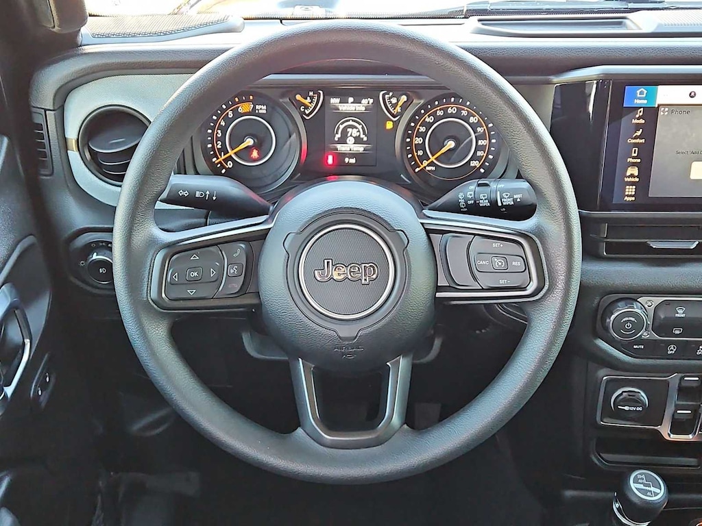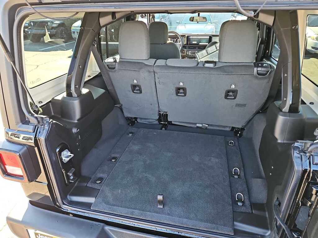 This Jeep comes with:Quick Order Package 22B Sport, Trailer Tow and Auxiliary Switch Group (7 and 4 Pin Wiring Harness, Auxiliary Switches, and Class II Receiver Hitch), 12.3 Touchscreen Display, 3.45 Overall Top Gear Ratio, 4-Wheel Disc Brakes, 4G LTE Wi-Fi Hot Spot, 8 Speakers, ABS brakes, Air Conditioning, AM/FM radio: SiriusXM with 360L, Apple CarPlay, Apple CarPlay/Android Auto, Aux Battery, Black 3-Piece Hard Top, Brake assist, Compass, Connectivity - US/Canada, Delay-off headlights, Driver door bin, Driver vanity mirror, Dual front impact airbags, Dual front side impact airbags, Electronic Stability Control, For More Info, Call 800-643-2112, Freedom Panel Storage Bag, Front anti-roll bar, Front Bucket Seats, Front Center Armrest w/Storage, Front fog lights, Front reading lights, Google Android Auto, Illuminated entry, Integrated Center Stack Radio, Integrated roll-over protection, Jeep Trail Rated Kit, Low tire pressure warning, Manufacture Statement of Origin, MOPAR All-Weather Floor Mats, No Soft Top, Non-Lock Fuel Cap Without Discriminator, Normal Duty Suspension, Occupant sensing airbag, Outside temperature display, Overhead airbag, Panic alarm, ParkView Rear Back-Up Camera, Passenger door bin, Passenger vanity mirror, Power steering, Power windows, Radio data system, Radio: Uconnect 5 with 12.3 Display, Rear anti-roll bar, Rear reading lights, Rear Window Defroster, Rear Window Wiper/Washer, Remote keyless entry, SiriusXM Radio Service, SiriusXM with 360L, Speed control, Split folding rear seat, Steering wheel mounted audio controls, Stop-Start Dual Battery System, Tachometer, Telescoping steering wheel, Tilt steering wheel, Traction control, Trip computer, Variably intermittent wipers, Wheels: 17 x 7.5 Black Steel Styled, and Wheels: 17 x 7.5 Gray. Prices do not include Protection Package + includes Vehicle Tint at $599, Door Edge Guards at $399, Wheel Locks at $199, PermaPlate at $700, LoJack at $1,199 and Etch at $899. Price does not include $699 Dealer Documentation Fee, taxes, and license fee.