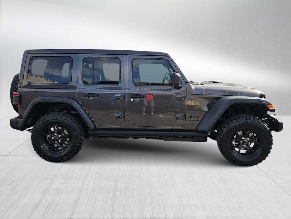 This Jeep comes with:Convenience Group (2-Door Passive Entry, Front Door Locks, Air Conditioning with Auto Temp Control, Air Filtering, Cluster 7.0 TFT Color Display, Emergency/Assistance Call, Heated Front Seats, Heated Steering Wheel, and Universal Garage Door Opener), Quick Order Package 24W Willys (4-Wheel Drive Swing Gate Decal, 7 and 4 Pin Wiring Harness, Advanced Brake Assist, Automatic Headlamps, Auxiliary Switches, Black Grille with Gloss Black Rings, Class II Receiver Hitch, Conventional Differential Front Axle, Corning Gorilla Glass, Dana M210 Wide HD Tube Front Axle, Dana M220 Wide Rear Axle, Daytime Running Lamps LED Accents, Deep Tint Sunscreen Windows, E-Locker Rear Axle, Enhanced Adaptive Cruise Control, Front LED Fog Lamps, Full Speed Forward Collision Warning Plus, Increased Travel Export Tuned Suspension, Injection Molded Black Rear Bumper, LED Premium Reflector Headlamps, Mold in Color Bumper with Gloss Black, Molded in Color Rubicon Highline Flare, MOPAR All-Weather Floor Mats, Off-Road Plus Mode, Power Heated Mirrors, Premium Wrapped Steering Wheel, Security Alarm, Sun Visors with Illuminated Vanity Mirrors, Wheels: 17 x 7.5 Painted Black, and Willys Hood Decal), Safety Group (Auto High Beam Headlamp Control, Blind Spot and Cross Path Detection, LED Taillamps, and ParkSense Rear Park Assist System), Steel Power Dome Hood Package (Power Dome Dual Vented Hood), 12.3 Touchscreen Display, 4-Wheel Disc Brakes, 4G LTE Wi-Fi Hot Spot, 8 Speakers, ABS brakes, Air Conditioning, AM/FM radio: SiriusXM with 360L, Apple CarPlay, Apple CarPlay/Android Auto, Aux Battery, Brake assist, Compass, Connectivity - US/Canada, Delay-off headlights, Driver door bin, Driver vanity mirror, Dual front impact airbags, Dual front side impact airbags, Electronic Stability Control, For More Info, Call 800-643-2112, Front anti-roll bar, Front Bucket Seats, Front Center Armrest w/Storage, Front fog lights, Front reading lights, Google Android Auto, Illuminated entry, Integrated Center Stack Radio, Integrated roll-over protection, Jeep Trail Rated Kit, Low tire pressure warning, Manufacture Statement of Origin, Non-Lock Fuel Cap Without Discriminator, Normal Duty Suspension, Occupant sensing airbag, Outside temperature display, Overhead airbag, Panic alarm, ParkView Rear Back-Up Camera, Passenger door bin, Passenger vanity mirror, Power steering, Power Top Quarter Window Storage Bag, Power windows, Radio data system, Radio: Uconnect 5 with 12.3 Display, Rear anti-roll bar, Rear reading lights, Rear Window Defroster, Rear Window Wiper/Washer, Remote keyless entry, Removable Rear Quarter Windows, SiriusXM Radio Service, SiriusXM with 360L, Sky One-Touch Power Top, Speed control, Split folding rear seat, Steering wheel mounted audio controls, Stop-Start Dual Battery System, Tachometer, Telescoping steering wheel, Tilt steering wheel, Traction control, Trip computer, Variably intermittent wipers, and Wheels: 17 x 7.5 Black Steel Styled. Prices do not include Protection Package + includes Vehicle Tint at $599, Door Edge Guards at $399, Wheel Locks at $199, PermaPlate at $700, LoJack at $1,199 and Etch at $899. Price does not include $699 Dealer Documentation Fee, taxes, and license fee. Price includes: $1000 - 2026 National Retail Bonus Cash . Exp. 04/30/2026