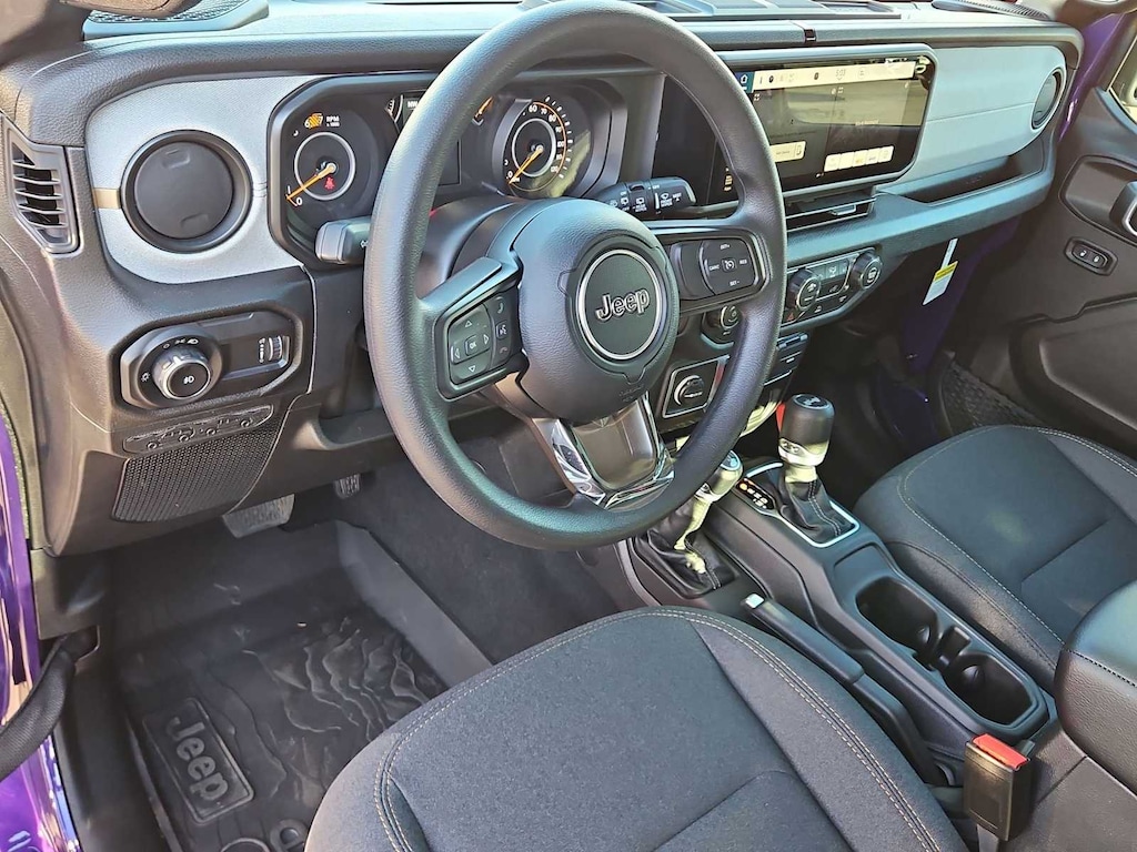 This Jeep comes with:Quick Order Package 22B Sport, 12.3 Touchscreen Display, 3.45 Overall Top Gear Ratio, 4-Wheel Disc Brakes, 4G LTE Wi-Fi Hot Spot, 8 Speakers, ABS brakes, Air Conditioning, AM/FM radio: SiriusXM with 360L, Apple CarPlay, Apple CarPlay/Android Auto, Aux Battery, Black 3-Piece Hard Top, Brake assist, Cloth Low-Back Bucket Seats, Compass, Connectivity - US/Canada, Delay-off headlights, Driver door bin, Driver vanity mirror, Dual front impact airbags, Dual front side impact airbags, Electronic Stability Control, For More Info, Call 800-643-2112, Freedom Panel Storage Bag, Front anti-roll bar, Front Bucket Seats, Front Center Armrest w/Storage, Front fog lights, Front reading lights, Google Android Auto, Illuminated entry, Integrated Center Stack Radio, Integrated roll-over protection, Low tire pressure warning, MOPAR All-Weather Floor Mats, Non-Lock Fuel Cap Without Discriminator, Normal Duty Suspension, Occupant sensing airbag, Outside temperature display, Overhead airbag, Panic alarm, ParkView Rear Back-Up Camera, Passenger door bin, Passenger vanity mirror, Power steering, Power windows, Radio data system, Radio: Uconnect 5 with 12.3 Display, Rear anti-roll bar, Rear reading lights, Rear Window Defroster, Rear Window Wiper/Washer, Remote keyless entry, SiriusXM Radio Service, SiriusXM with 360L, Speed control, Steering wheel mounted audio controls, Stop-Start Dual Battery System, Tachometer, Telescoping steering wheel, Tilt steering wheel, Traction control, Trip computer, Variably intermittent wipers, and Wheels: 17 x 7.5 Black Steel Styled. Prices do not include Protection Package + includes Vehicle Tint at $599, Door Edge Guards at $399, Wheel Locks at $199, PermaPlate at $700, LoJack at $1,199 and Etch at $899. Price does not include $699 Dealer Documentation Fee, taxes, and license fee.