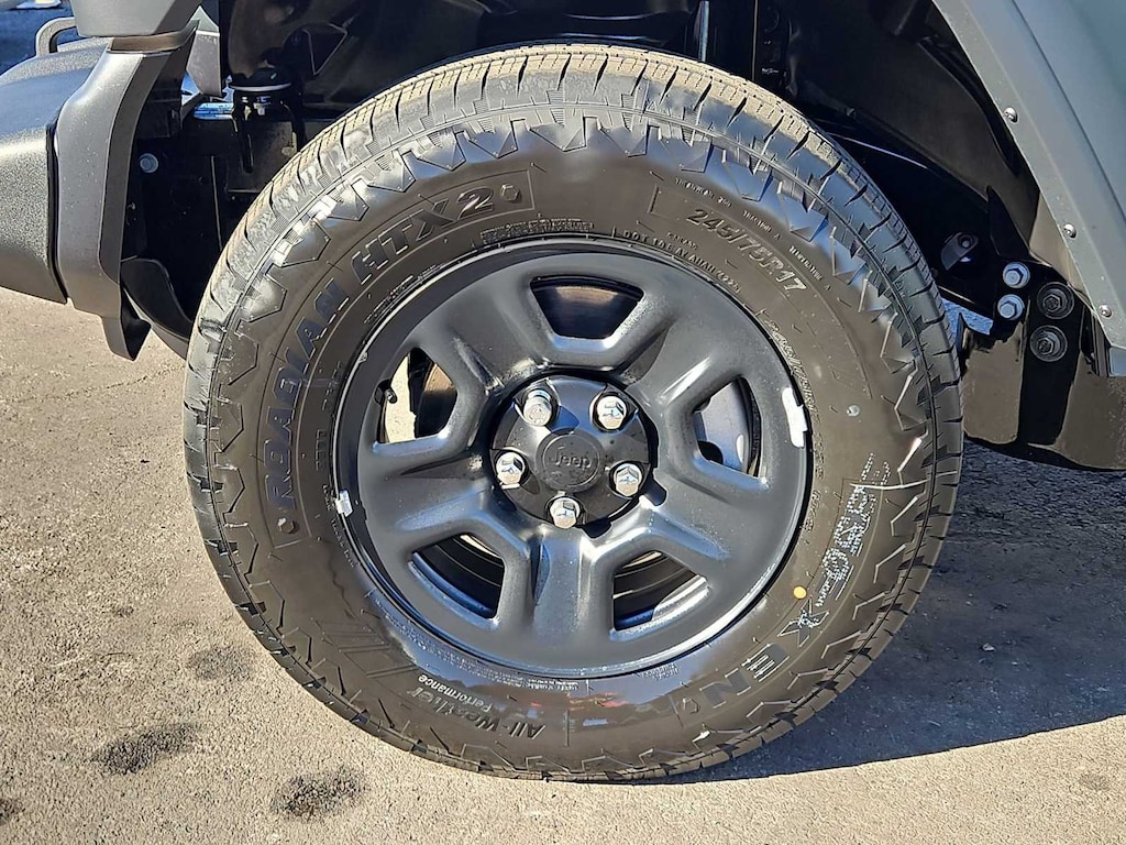 This Jeep comes with:Quick Order Package 24B Sport, 12.3 Touchscreen Display, 3.45 Overall Top Gear Ratio, 4-Wheel Disc Brakes, 4G LTE Wi-Fi Hot Spot, 8 Speakers, ABS brakes, Air Conditioning, AM/FM radio: SiriusXM with 360L, Apple CarPlay, Apple CarPlay/Android Auto, Aux Battery, Black 3-Piece Hard Top, Brake assist, Compass, Connectivity - US/Canada, Delay-off headlights, Driver door bin, Driver vanity mirror, Dual front impact airbags, Dual front side impact airbags, Electronic Stability Control, For More Info, Call 800-643-2112, Freedom Panel Storage Bag, Front anti-roll bar, Front Bucket Seats, Front Center Armrest w/Storage, Front fog lights, Front reading lights, Google Android Auto, Illuminated entry, Integrated Center Stack Radio, Integrated roll-over protection, Jeep Trail Rated Kit, Low tire pressure warning, Manufacture Statement of Origin, MOPAR All-Weather Floor Mats, No Soft Top, Non-Lock Fuel Cap Without Discriminator, Normal Duty Suspension, Occupant sensing airbag, Outside temperature display, Overhead airbag, Panic alarm, ParkView Rear Back-Up Camera, Passenger door bin, Passenger vanity mirror, Power steering, Power windows, Radio data system, Radio: Uconnect 5 with 12.3 Display, Rear anti-roll bar, Rear reading lights, Rear Window Defroster, Rear Window Wiper/Washer, Remote keyless entry, SiriusXM Radio Service, SiriusXM with 360L, Speed control, Split folding rear seat, Steering wheel mounted audio controls, Stop-Start Dual Battery System, Tachometer, Telescoping steering wheel, Tilt steering wheel, Traction control, Trip computer, Variably intermittent wipers, and Wheels: 17 x 7.5 Black Steel Styled. Prices do not include Protection Package + includes Vehicle Tint at $599, Door Edge Guards at $399, Wheel Locks at $199, PermaPlate at $700, LoJack at $1,199 and Etch at $899. Price does not include $699 Dealer Documentation Fee, taxes, and license fee. Price includes: $1000 - 2026 National Retail Bonus Cash . Exp. 03/31/2026