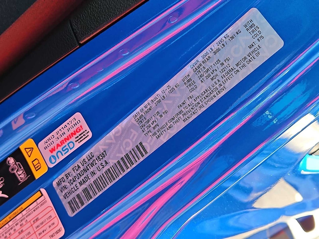 This Jeep comes with:Quick Order Package 22B Sport, 12.3 Touchscreen Display, 3.45 Overall Top Gear Ratio, 4-Wheel Disc Brakes, 4G LTE Wi-Fi Hot Spot, 8 Speakers, ABS brakes, Air Conditioning, AM/FM radio: SiriusXM with 360L, Apple CarPlay, Apple CarPlay/Android Auto, Aux Battery, Black 3-Piece Hard Top, Brake assist, Compass, Connectivity - US/Canada, Delay-off headlights, Driver door bin, Driver vanity mirror, Dual front impact airbags, Dual front side impact airbags, Electronic Stability Control, For More Info, Call 800-643-2112, Freedom Panel Storage Bag, Front anti-roll bar, Front Bucket Seats, Front Center Armrest w/Storage, Front fog lights, Front reading lights, Google Android Auto, Illuminated entry, Integrated Center Stack Radio, Integrated roll-over protection, Jeep Trail Rated Kit, Low tire pressure warning, MOPAR All-Weather Floor Mats, No Soft Top, Non-Lock Fuel Cap Without Discriminator, Normal Duty Suspension, Occupant sensing airbag, Outside temperature display, Overhead airbag, Panic alarm, ParkView Rear Back-Up Camera, Passenger door bin, Passenger vanity mirror, Power steering, Power windows, Radio data system, Radio: Uconnect 5 with 12.3 Display, Rear anti-roll bar, Rear reading lights, Rear Window Defroster, Rear Window Wiper/Washer, Remote keyless entry, SiriusXM Radio Service, SiriusXM with 360L, Speed control, Split folding rear seat, Steering wheel mounted audio controls, Stop-Start Dual Battery System, Tachometer, Telescoping steering wheel, Tilt steering wheel, Traction control, Trip computer, Variably intermittent wipers, and Wheels: 17 x 7.5 Black Steel Styled. Prices do not include Protection Package + includes Vehicle Tint at $599, Door Edge Guards at $399, Wheel Locks at $199, PermaPlate at $700, LoJack at $1,199 and Etch at $899. Price does not include $699 Dealer Documentation Fee, taxes, and license fee. Price includes: $1000 - 2026 National Retail Bonus Cash . Exp. 04/30/2026