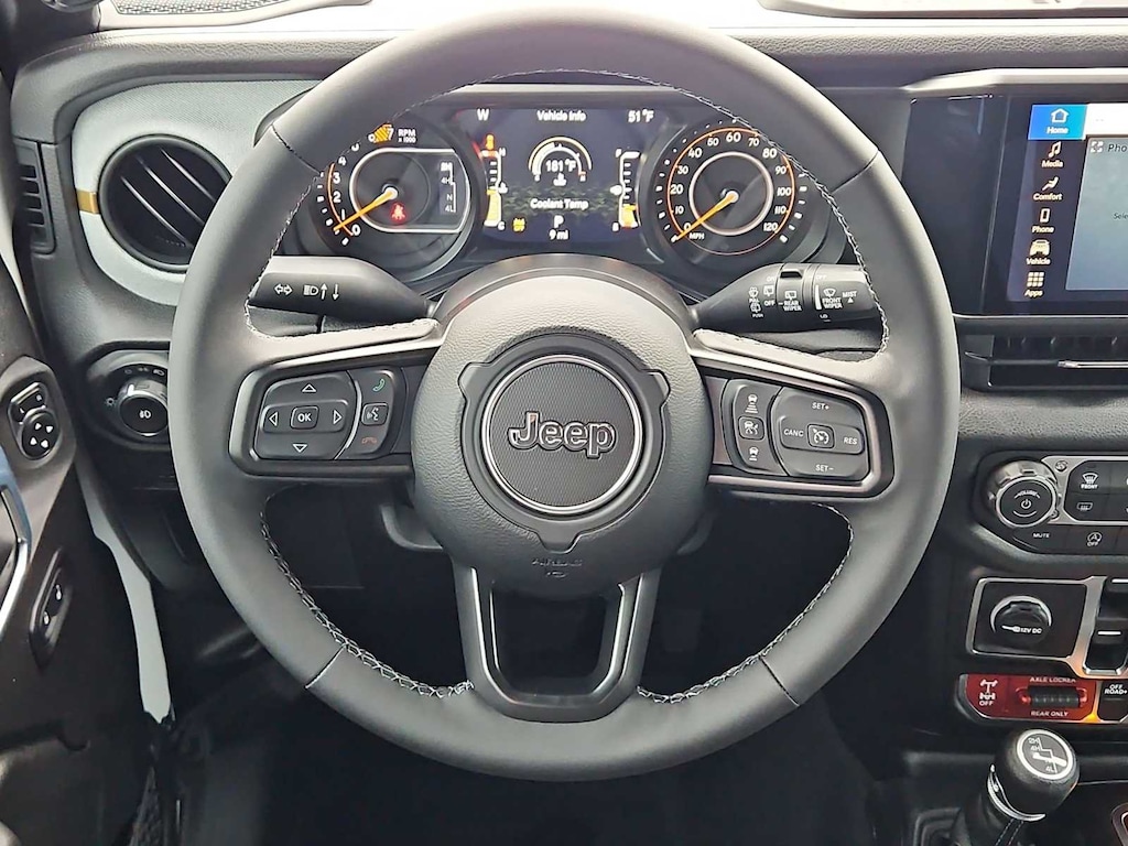 This Jeep comes with:Convenience Group (2-Door Passive Entry, Front Door Locks, Air Conditioning with Auto Temp Control, Air Filtering, Cluster 7.0 TFT Color Display, Emergency/Assistance Call, Heated Front Seats, Heated Steering Wheel, and Universal Garage Door Opener), Quick Order Package 24W Willys (4-Wheel Drive Swing Gate Decal, 7 and 4 Pin Wiring Harness, Advanced Brake Assist, Automatic Headlamps, Auxiliary Switches, Black Grille with Gloss Black Rings, Class II Receiver Hitch, Conventional Differential Front Axle, Corning Gorilla Glass, Dana M210 Wide HD Tube Front Axle, Dana M220 Wide Rear Axle, Daytime Running Lamps LED Accents, Deep Tint Sunscreen Windows, E-Locker Rear Axle, Enhanced Adaptive Cruise Control, Front LED Fog Lamps, Full Speed Forward Collision Warning Plus, Injection Molded Black Rear Bumper, LED Premium Reflector Headlamps, Mold in Color Bumper with Gloss Black, Molded in Color Rubicon Highline Flare, MOPAR All-Weather Floor Mats, Off-Road Plus Mode, Power Heated Mirrors, Premium Wrapped Steering Wheel, Security Alarm, Sun Visors with Illuminated Vanity Mirrors, Wheels: 17 x 7.5 Painted Black, Willys Suspension, and Willys Hood Decal), Safety Group (Auto High Beam Headlamp Control, Blind Spot and Cross Path Detection, LED Taillamps, and ParkSense Rear Park Assist System), Steel Power Dome Hood Package (Power Dome Dual Vented Hood), 12.3 Touchscreen Display, 4-Wheel Disc Brakes, 4G LTE Wi-Fi Hot Spot, 8 Speakers, ABS brakes, Air Conditioning, AM/FM radio: SiriusXM with 360L, Apple CarPlay, Apple CarPlay/Android Auto, Aux Battery, Brake assist, Compass, Connectivity - US/Canada, Delay-off headlights, Driver door bin, Driver vanity mirror, Dual front impact airbags, Dual front side impact airbags, Electronic Stability Control, For More Info, Call 800-643-2112, Front anti-roll bar, Front Bucket Seats, Front Center Armrest w/Storage, Front fog lights, Front reading lights, Google Android Auto, Illuminated entry, Integrated Center Stack Radio, Integrated roll-over protection, Jeep Trail Rated Kit, Low tire pressure warning, Manufacture Statement of Origin, Non-Lock Fuel Cap Without Discriminator, Normal Duty Suspension, Occupant sensing airbag, Outside temperature display, Overhead airbag, Panic alarm, ParkView Rear Back-Up Camera, Passenger door bin, Passenger vanity mirror, Power steering, Power Top Quarter Window Storage Bag, Power windows, Radio data system, Radio: Uconnect 5 with 12.3 Display, Rear anti-roll bar, Rear reading lights, Rear Window Defroster, Rear Window Wiper/Washer, Remote keyless entry, Removable Rear Quarter Windows, SiriusXM Radio Service, SiriusXM with 360L, Sky One-Touch Power Top, Speed control, Split folding rear seat, Steering wheel mounted audio controls, Stop-Start Dual Battery System, Tachometer, Telescoping steering wheel, Tilt steering wheel, Traction control, Trip computer, Variably intermittent wipers, and Wheels: 17 x 7.5 Black Steel Styled. Prices do not include Protection Package + includes Vehicle Tint at $599, Door Edge Guards at $399, Wheel Locks at $199, PermaPlate at $700, LoJack at $1,199 and Etch at $899. Price does not include $699 Dealer Documentation Fee, taxes, and license fee. Price includes: $3500 - 2026 National Select Inventory Bonus Cash . Exp. 01/04/2027