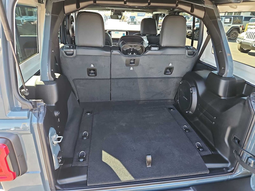 This Jeep comes with:ABS brakes, Alloy wheels, Compass, Electronic Stability Control, Front dual zone A/C, Heated door mirrors, Heated front seats, Illuminated entry, Low tire pressure warning, Navigation System, ParkView Rear Back-Up Camera, Remote keyless entry, Traction control, 12.3 Touchscreen Display, 35 Tire Rubicon 392 Suspension, 4-Wheel Disc Brakes, 4.56 Rear Axle Ratio, 4G LTE Wi-Fi Hot Spot, 9 Speakers, Air Conditioning, AM/FM radio: SiriusXM with 360L, Apple CarPlay, Apple CarPlay/Android Auto, Auto-dimming Rear-View mirror, Automatic temperature control, Aux Battery, Auxiliary Switches, Brake assist, Class II Receiver Hitch, Connectivity - US/Canada, Convertible HardTop, Delay-off headlights, Driver door bin, Driver vanity mirror, Dual front impact airbags, Dual front side impact airbags, Emergency communication system: Jeep Connect, For More Info, Call 800-643-2112, Front anti-roll bar, Front Bucket Seats, Front Center Armrest w/Storage, Front fog lights, Front reading lights, Fully automatic headlights, Garage door transmitter, Glass rear window, Google Android Auto, Heated steering wheel, Integrated Center Stack Radio, Integrated roll-over protection, Leather Shift Knob, Leather steering wheel, Nappa Leather Seats, Non-Lock Fuel Cap Without Discriminator, Occupant sensing airbag, Outside temperature display, Overhead airbag, Panic alarm, Passenger door bin, Passenger vanity mirror, Power door mirrors, Power driver seat, Power passenger seat, Power steering, Power windows, Radio data system, Radio: Uconnect 5 Navigation with 12.3 Display, Rear anti-roll bar, Rear reading lights, Rear seat center armrest, Rear window defroster, Rear window wiper, Security system, SiriusXM Radio Service, SiriusXM with 360L, Speed control, Split folding rear seat, Sport steering wheel, Steering wheel mounted audio controls, Stop-Start Dual Battery System, Tachometer, Telescoping steering wheel, Tilt steering wheel, Trip computer, Variably intermittent wipers, Voltmeter, and Wheels: 17 x 8 Machined with Black Pockets. Prices do not include Protection Package + includes Vehicle Tint at $599, Door Edge Guards at $399, Wheel Locks at $199, PermaPlate at $700, LoJack at $1,199 and Etch at $899. Price does not include $699 Dealer Documentation Fee, taxes, and license fee.