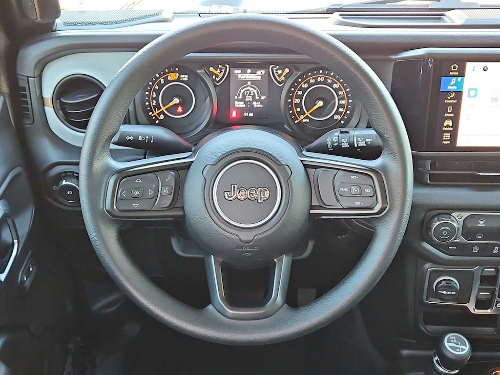 This Jeep comes with:Quick Order Package 22B Sport, Trailer Tow and Auxiliary Switch Group (7 and 4 Pin Wiring Harness, Auxiliary Switches, and Class II Receiver Hitch), 12.3 Touchscreen Display, 3.45 Overall Top Gear Ratio, 4-Wheel Disc Brakes, 4G LTE Wi-Fi Hot Spot, 8 Speakers, ABS brakes, Air Conditioning, AM/FM radio: SiriusXM with 360L, Apple CarPlay, Apple CarPlay/Android Auto, Aux Battery, Black 3-Piece Hard Top, Brake assist, Compass, Connectivity - US/Canada, Delay-off headlights, Driver door bin, Driver vanity mirror, Dual front impact airbags, Dual front side impact airbags, Electronic Stability Control, For More Info, Call 800-643-2112, Freedom Panel Storage Bag, Front anti-roll bar, Front Bucket Seats, Front Center Armrest w/Storage, Front fog lights, Front reading lights, Google Android Auto, Illuminated entry, Integrated Center Stack Radio, Integrated roll-over protection, Jeep Trail Rated Kit, Low tire pressure warning, Manufacture Statement of Origin, MOPAR All-Weather Floor Mats, No Soft Top, Non-Lock Fuel Cap Without Discriminator, Normal Duty Suspension, Occupant sensing airbag, Outside temperature display, Overhead airbag, Panic alarm, ParkView Rear Back-Up Camera, Passenger door bin, Passenger vanity mirror, Power steering, Power windows, Radio data system, Radio: Uconnect 5 with 12.3 Display, Rear anti-roll bar, Rear reading lights, Rear Window Defroster, Rear Window Wiper/Washer, Remote keyless entry, SiriusXM Radio Service, SiriusXM with 360L, Speed control, Split folding rear seat, Steering wheel mounted audio controls, Stop-Start Dual Battery System, Tachometer, Telescoping steering wheel, Tilt steering wheel, Traction control, Trip computer, Variably intermittent wipers, and Wheels: 17 x 7.5 Black Steel Styled. Prices do not include Protection Package + includes Vehicle Tint at $599, Door Edge Guards at $399, Wheel Locks at $199, PermaPlate at $700, LoJack at $1,199 and Etch at $899. Price does not include $699 Dealer Documentation Fee, taxes, and license fee. Price includes: $1000 - 2026 National Retail Bonus Cash . Exp. 04/30/2026 $1500 - 2026 National Select Inventory Bonus Cash . Exp. 01/04/2027