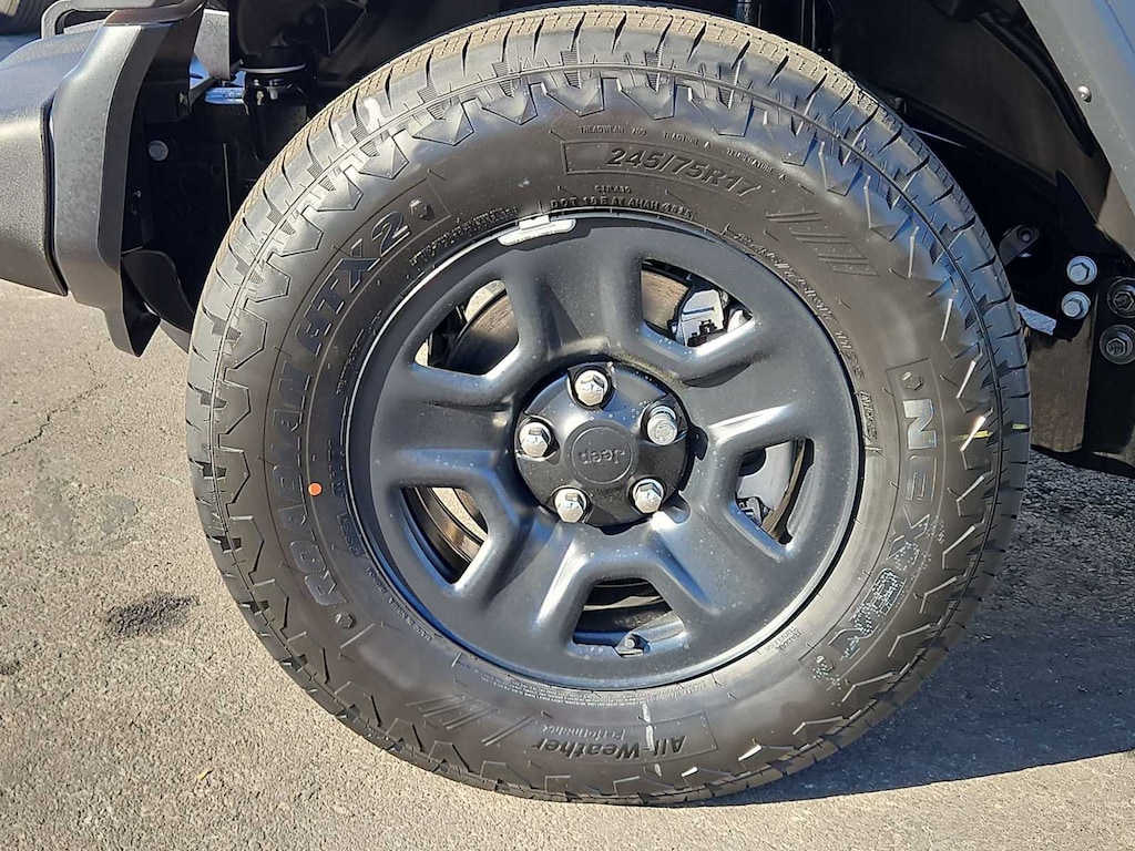 This Jeep comes with:Quick Order Package 24B Sport, 12.3 Touchscreen Display, 3.45 Overall Top Gear Ratio, 4-Wheel Disc Brakes, 4G LTE Wi-Fi Hot Spot, 8 Speakers, ABS brakes, Air Conditioning, AM/FM radio: SiriusXM with 360L, Apple CarPlay, Apple CarPlay/Android Auto, Aux Battery, Black 3-Piece Hard Top, Brake assist, Compass, Connectivity - US/Canada, Delay-off headlights, Driver door bin, Driver vanity mirror, Dual front impact airbags, Dual front side impact airbags, Electronic Stability Control, For More Info, Call 800-643-2112, Freedom Panel Storage Bag, Front anti-roll bar, Front Bucket Seats, Front Center Armrest w/Storage, Front fog lights, Front reading lights, Google Android Auto, Illuminated entry, Integrated Center Stack Radio, Integrated roll-over protection, Jeep Trail Rated Kit, Low tire pressure warning, Manufacture Statement of Origin, MOPAR All-Weather Floor Mats, No Soft Top, Non-Lock Fuel Cap Without Discriminator, Normal Duty Suspension, Occupant sensing airbag, Outside temperature display, Overhead airbag, Panic alarm, ParkView Rear Back-Up Camera, Passenger door bin, Passenger vanity mirror, Power steering, Power windows, Radio data system, Radio: Uconnect 5 with 12.3 Display, Rear anti-roll bar, Rear reading lights, Rear Window Defroster, Rear Window Wiper/Washer, Remote keyless entry, SiriusXM Radio Service, SiriusXM with 360L, Speed control, Split folding rear seat, Steering wheel mounted audio controls, Stop-Start Dual Battery System, Tachometer, Telescoping steering wheel, Tilt steering wheel, Traction control, Trip computer, Variably intermittent wipers, and Wheels: 17 x 7.5 Black Steel Styled. Prices do not include Protection Package + includes Vehicle Tint at $599, Door Edge Guards at $399, Wheel Locks at $199, PermaPlate at $700, LoJack at $1,199 and Etch at $899. Price does not include $699 Dealer Documentation Fee, taxes, and license fee. Price includes: $1000 - 2026 National Retail Bonus Cash . Exp. 04/30/2026