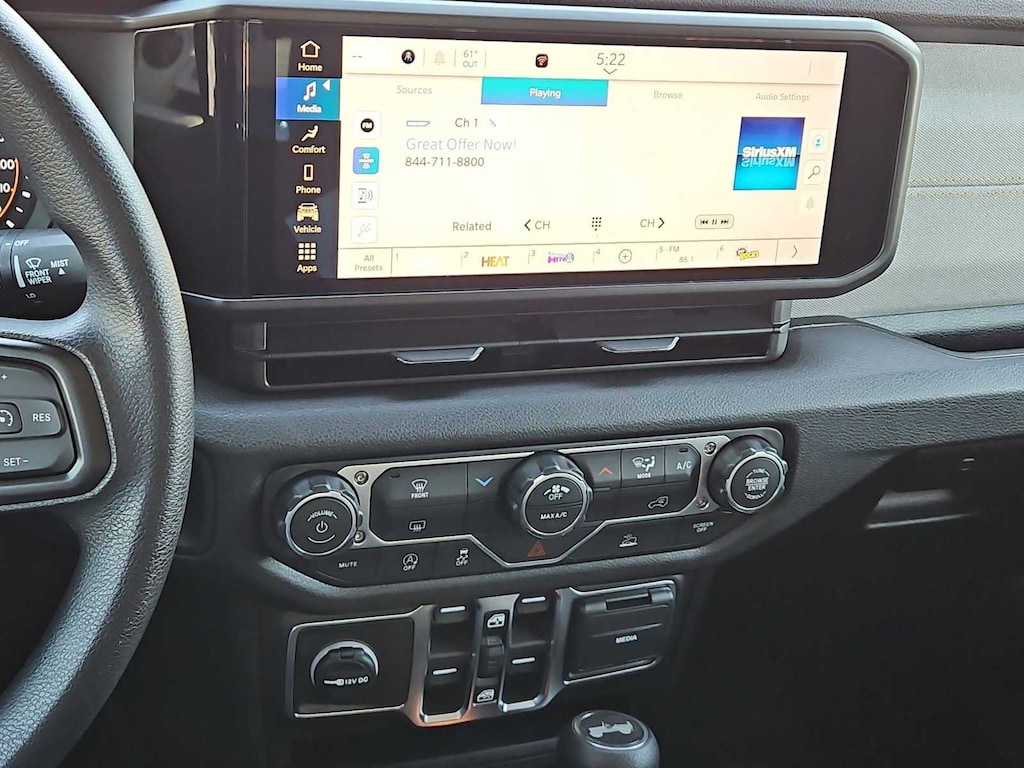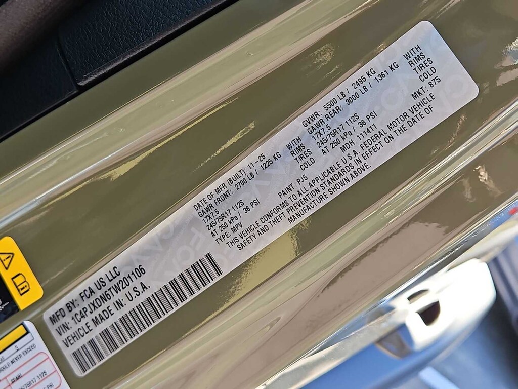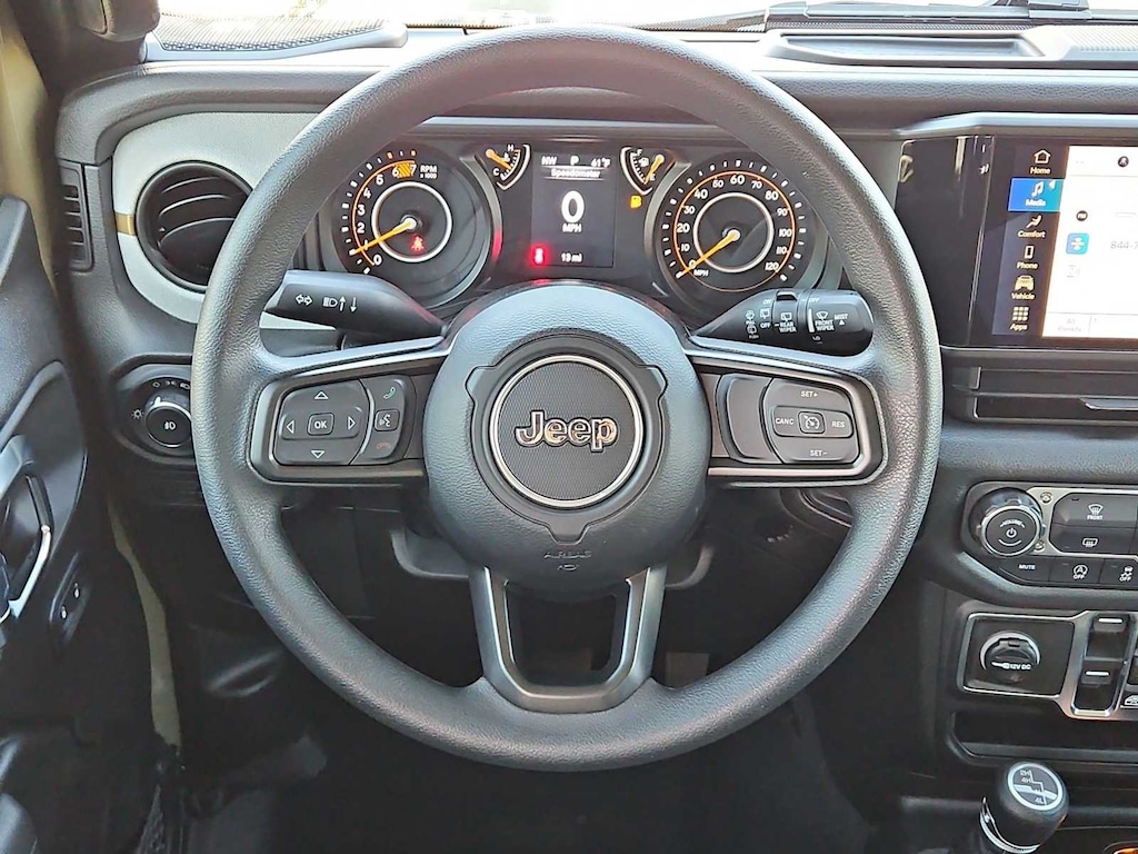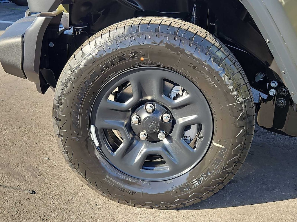 This Jeep comes with:Quick Order Package 22B Sport, 12.3 Touchscreen Display, 3.45 Overall Top Gear Ratio, 4-Wheel Disc Brakes, 4G LTE Wi-Fi Hot Spot, 8 Speakers, ABS brakes, Air Conditioning, AM/FM radio: SiriusXM with 360L, Apple CarPlay, Apple CarPlay/Android Auto, Aux Battery, Black 3-Piece Hard Top, Brake assist, Compass, Connectivity - US/Canada, Delay-off headlights, Driver door bin, Driver vanity mirror, Dual front impact airbags, Dual front side impact airbags, Electronic Stability Control, For More Info, Call 800-643-2112, Freedom Panel Storage Bag, Front anti-roll bar, Front Bucket Seats, Front Center Armrest w/Storage, Front fog lights, Front reading lights, Google Android Auto, Illuminated entry, Integrated Center Stack Radio, Integrated roll-over protection, Jeep Trail Rated Kit, Low tire pressure warning, Manufacture Statement of Origin, MOPAR All-Weather Floor Mats, No Soft Top, Non-Lock Fuel Cap Without Discriminator, Normal Duty Suspension, Occupant sensing airbag, Outside temperature display, Overhead airbag, Panic alarm, ParkView Rear Back-Up Camera, Passenger door bin, Passenger vanity mirror, Power steering, Power windows, Radio data system, Radio: Uconnect 5 with 12.3 Display, Rear anti-roll bar, Rear reading lights, Rear Window Defroster, Rear Window Wiper/Washer, Remote keyless entry, SiriusXM Radio Service, SiriusXM with 360L, Speed control, Split folding rear seat, Steering wheel mounted audio controls, Stop-Start Dual Battery System, Tachometer, Telescoping steering wheel, Tilt steering wheel, Traction control, Trip computer, Variably intermittent wipers, and Wheels: 17 x 7.5 Black Steel Styled. Prices do not include Protection Package + includes Vehicle Tint at $599, Door Edge Guards at $399, Wheel Locks at $199, PermaPlate at $700, LoJack at $1,199 and Etch at $899. Price does not include $699 Dealer Documentation Fee, taxes, and license fee. Price includes: $1000 - 2026 National Retail Bonus Cash . Exp. 04/30/2026