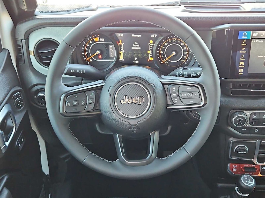 This Jeep comes with:Convenience Group (2-Door Passive Entry, Front Door Locks, Air Conditioning with Auto Temp Control, Air Filtering, Cluster 7.0 TFT Color Display, Emergency/Assistance Call, Heated Front Seats, Heated Steering Wheel, and Universal Garage Door Opener), Quick Order Package 24W Willys (4-Wheel Drive Swing Gate Decal, 7 and 4 Pin Wiring Harness, Advanced Brake Assist, Automatic Headlamps, Auxiliary Switches, Black Grille with Gloss Black Rings, Class II Receiver Hitch, Conventional Differential Front Axle, Corning Gorilla Glass, Dana M210 Wide HD Tube Front Axle, Dana M220 Wide Rear Axle, Daytime Running Lamps LED Accents, Deep Tint Sunscreen Windows, E-Locker Rear Axle, Enhanced Adaptive Cruise Control, Front LED Fog Lamps, Full Speed Forward Collision Warning Plus, Injection Molded Black Rear Bumper, LED Premium Reflector Headlamps, Mold in Color Bumper with Gloss Black, Molded in Color Rubicon Highline Flare, MOPAR All-Weather Floor Mats, Off-Road Plus Mode, Power Heated Mirrors, Premium Wrapped Steering Wheel, Security Alarm, Sun Visors with Illuminated Vanity Mirrors, Wheels: 17 x 7.5 Painted Black, Willys Suspension, and Willys Hood Decal), Safety Group (Auto High Beam Headlamp Control, Blind Spot and Cross Path Detection, LED Taillamps, and ParkSense Rear Park Assist System), Steel Power Dome Hood Package (Power Dome Dual Vented Hood), 12.3 Touchscreen Display, 4-Wheel Disc Brakes, 4G LTE Wi-Fi Hot Spot, 8 Speakers, ABS brakes, Air Conditioning, AM/FM radio: SiriusXM with 360L, Apple CarPlay, Apple CarPlay/Android Auto, Aux Battery, Brake assist, Compass, Connectivity - US/Canada, Delay-off headlights, Driver door bin, Driver vanity mirror, Dual front impact airbags, Dual front side impact airbags, Electronic Stability Control, For More Info, Call 800-643-2112, Front anti-roll bar, Front Bucket Seats, Front Center Armrest w/Storage, Front fog lights, Front reading lights, Google Android Auto, Illuminated entry, Integrated Center Stack Radio, Integrated roll-over protection, Jeep Trail Rated Kit, Low tire pressure warning, Manufacture Statement of Origin, Non-Lock Fuel Cap Without Discriminator, Normal Duty Suspension, Occupant sensing airbag, Outside temperature display, Overhead airbag, Panic alarm, ParkView Rear Back-Up Camera, Passenger door bin, Passenger vanity mirror, Power steering, Power Top Quarter Window Storage Bag, Power windows, Radio data system, Radio: Uconnect 5 with 12.3 Display, Rear anti-roll bar, Rear reading lights, Rear Window Defroster, Rear Window Wiper/Washer, Remote keyless entry, Removable Rear Quarter Windows, SiriusXM Radio Service, SiriusXM with 360L, Sky One-Touch Power Top, Speed control, Split folding rear seat, Steering wheel mounted audio controls, Stop-Start Dual Battery System, Tachometer, Telescoping steering wheel, Tilt steering wheel, Traction control, Trip computer, Variably intermittent wipers, and Wheels: 17 x 7.5 Black Steel Styled. Prices do not include Protection Package + includes Vehicle Tint at $599, Door Edge Guards at $399, Wheel Locks at $199, PermaPlate at $700, LoJack at $1,199 and Etch at $899. Price does not include $699 Dealer Documentation Fee, taxes, and license fee.