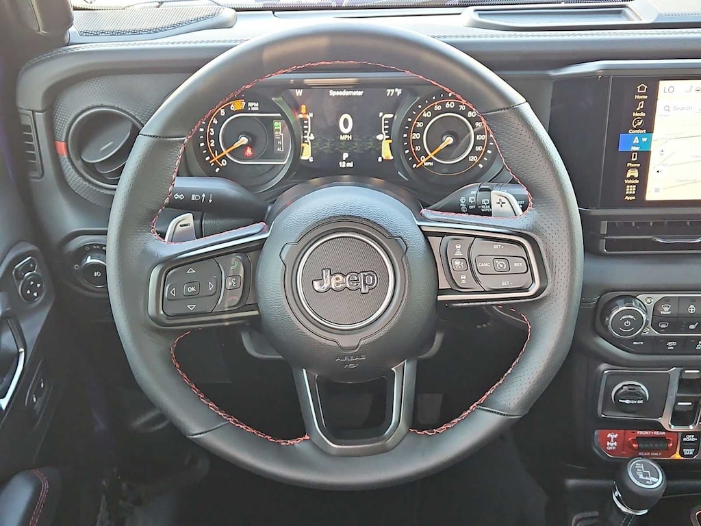 This Jeep comes with:Quick Order Package 27X Moab (Body Color Grille w/Neu Grey Metallic Ring, Delete 4-Wheel Drive Swing Gate Decal, E-Locker Front Axle, Freedom Panel Storage Bag, Front Disconnecting Stabilizer Bar, MOAB 392 Hood Decal, MOAB 392 Swing Gate Plaque, MOPAR Hardtop Headliner, Nappa Leather Seats, Premium Door Trim Panel, Rear Window Defroster, Rear Window Wiper/Washer, and Sepia Interior Accents), 12.3 Touchscreen Display, 35 Tire Rubicon 392 Suspension, 4-Wheel Disc Brakes, 4.56 Rear Axle Ratio, 4G LTE Wi-Fi Hot Spot, 9 Speakers, ABS brakes, Air Conditioning, Alloy wheels, AM/FM radio: SiriusXM with 360L, Apple CarPlay, Apple CarPlay/Android Auto, Auto High-beam Headlights, Auto-dimming Rear-View mirror, Automatic temperature control, Aux Battery, Auxiliary Switches, Brake assist, Class II Receiver Hitch, Compass, Connectivity - US/Canada, Delay-off headlights, Driver door bin, Driver vanity mirror, Dual front impact airbags, Dual front side impact airbags, Electronic Stability Control, Emergency communication system: Jeep Connect, For More Info, Call 800-643-2112, Front anti-roll bar, Front Bucket Seats, Front Center Armrest w/Storage, Front dual zone A/C, Front fog lights, Front License Plate Bracket, Front reading lights, Fully automatic headlights, Garage door transmitter, Glass rear window, Google Android Auto, Heated door mirrors, Heated front seats, Heated steering wheel, Illuminated entry, Integrated Center Stack Radio, Integrated roll-over protection, Leather Shift Knob, Leather steering wheel, Low tire pressure warning, Navigation System, Non-Lock Fuel Cap Without Discriminator, Occupant sensing airbag, Outside temperature display, Overhead airbag, Panic alarm, ParkView Rear Back-Up Camera, Passenger door bin, Passenger vanity mirror, Power door mirrors, Power driver seat, Power passenger seat, Power steering, Power Top Quarter Window Storage Bag, Power windows, Radio data system, Radio: Uconnect 5 Navigation with 12.3 Display, Rear anti-roll bar, Rear reading lights, Rear seat center armrest, Rear window defroster, Rear window wiper, Remote keyless entry, Removable Rear Quarter Windows, Security system, SiriusXM Radio Service, SiriusXM with 360L, Sky One-Touch Power Top, Speed control, Split folding rear seat, Sport steering wheel, Steering wheel mounted audio controls, Stop-Start Dual Battery System, Tachometer, Telescoping steering wheel, Tilt steering wheel, Traction control, Trip computer, Variably intermittent wipers, Voltmeter, Warn Winch, and Wheels: 17 x 8 Machined with Black Pockets. Prices do not include Protection Package + includes Vehicle Tint at $599, Door Edge Guards at $399, Wheel Locks at $199, PermaPlate at $700, LoJack at $1,199 and Etch at $899. Price does not include $699 Dealer Documentation Fee, taxes, and license fee.