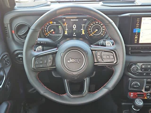 This Jeep comes with:Quick Order Package 27X Moab (Body Color Grille w/Neu Grey Metallic Ring, Delete 4-Wheel Drive Swing Gate Decal, Electronic Locking Front Axle, Freedom Panel Storage Bag, Front Disconnecting Stabilizer Bar, MOAB 392 Hood Decal, MOAB 392 Swing Gate Plaque, MOPAR Hardtop Headliner, Nappa Leather Seats, Premium Door Trim Panel, Rear Window Defroster, Rear Window Wiper/Washer, and Sepia Interior Accents), 12.3 Touchscreen Display, 35 Tire Rubicon 392 Suspension, 4-Wheel Disc Brakes, 4.56 Rear Axle Ratio, 4G LTE Wi-Fi Hot Spot, 9 Speakers, ABS brakes, Air Conditioning, Alloy wheels, AM/FM radio: SiriusXM with 360L, Apple CarPlay, Apple CarPlay/Android Auto, Auto High-beam Headlights, Auto-dimming Rear-View mirror, Automatic temperature control, Aux Battery, Auxiliary Switches, Brake assist, Class II Receiver Hitch, Compass, Connectivity - US/Canada, Delay-off headlights, Driver door bin, Driver vanity mirror, Dual front impact airbags, Dual front side impact airbags, Electronic Stability Control, Emergency communication system: Jeep Connect, For More Info, Call 800-643-2112, Front anti-roll bar, Front Bucket Seats, Front Center Armrest w/Storage, Front dual zone A/C, Front fog lights, Front License Plate Bracket, Front reading lights, Fully automatic headlights, Garage door transmitter, Glass rear window, Google Android Auto, Heated door mirrors, Heated front seats, Heated steering wheel, Illuminated entry, Integrated Center Stack Radio, Integrated roll-over protection, Leather Shift Knob, Leather steering wheel, Low tire pressure warning, Navigation System, Non-Lock Fuel Cap Without Discriminator, Occupant sensing airbag, Outside temperature display, Overhead airbag, Panic alarm, ParkView Rear Back-Up Camera, Passenger door bin, Passenger vanity mirror, Power door mirrors, Power driver seat, Power passenger seat, Power steering, Power Top Quarter Window Storage Bag, Power windows, Radio data system, Radio: Uconnect 5 Navigation with 12.3 Display, Rear anti-roll bar, Rear reading lights, Rear seat center armrest, Rear window defroster, Rear window wiper, Remote keyless entry, Removable Rear Quarter Windows, Security system, SiriusXM Radio Service, SiriusXM with 360L, Sky One-Touch Power Top, Speed control, Split folding rear seat, Sport steering wheel, Steering wheel mounted audio controls, Stop-Start Dual Battery System, Tachometer, Telescoping steering wheel, Tilt steering wheel, Traction control, Trip computer, Variably intermittent wipers, Voltmeter, Warn Winch, and Wheels: 17 x 8 Machined with Black Pockets. Prices do not include Protection Package + includes Vehicle Tint at $599, Door Edge Guards at $399, Wheel Locks at $199, PermaPlate at $700, LoJack at $1,199 and Etch at $899. Price does not include $699 Dealer Documentation Fee, taxes, and license fee.