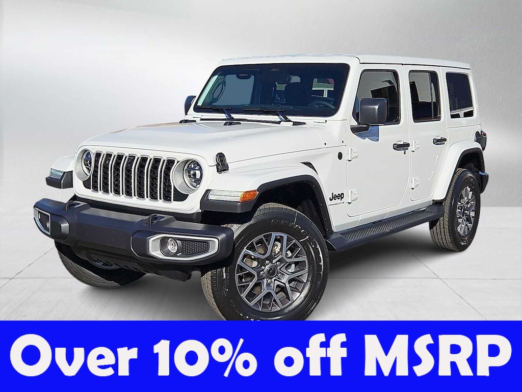 This Jeep comes with:Quick Order Package 22G, Sahara Popular Equipment Group (12.3 Touchscreen Display, 4G LTE Wi-Fi Hot Spot, Alpine Premium Audio System, Apple CarPlay, Auto High Beam Headlamp Control, Auto-Dimming Rear-View Mirror, Blind Spot & Cross Path Detection, Connected Travel & Traffic Services, Connectivity - US/Canada, For More Info, Call 800-643-2112, Google Android Auto, GPS Navigation, Hard Seat Back, HD Radio, Integrated Center Stack Radio, Integrated Off-Road Camera, Integrated Voice Command w/Bluetooth, Leather Wrapped Park Brake Handle, Leather Wrapped Shift Knob, McKinley Trimmed Seats, ParkSense Rear Park Assist System, Power 4-Way Driver Lumbar Adjust, Power 4-Way Passenger Lumbar Adjust, Power Adjust 8-Way Driver Seat, Power Adjust 8-Way Front Passenger Seat, Radio: Uconnect 5 Nav w/12.3 Display, Side Steps, SiriusXM Radio Service, SiriusXM w/360L, and Universal Garage Door Opener), 3.45 Overall Top Gear Ratio, 4-Wheel Disc Brakes, 8 Speakers, ABS brakes, Air Conditioning, Alloy wheels, AM/FM radio: SiriusXM with 360L, Apple CarPlay/Android Auto, Automatic temperature control, Aux Battery, Body Color 3-Piece Hard Top, Brake assist, Cloth Low-Back Bucket Seats, Compass, Delay-off headlights, Driver door bin, Driver vanity mirror, Dual front impact airbags, Dual front side impact airbags, Electronic Stability Control, Emergency communication system: Jeep Connect, Freedom Panel Storage Bag, Front anti-roll bar, Front Bucket Seats, Front Center Armrest w/Storage, Front dual zone A/C, Front fog lights, Front License Plate Bracket, Front reading lights, Fully automatic headlights, Heated door mirrors, Heated front seats, Heated steering wheel, Heavy Duty Suspension w/Gas Shocks, Illuminated entry, Integrated roll-over protection, Jeep Trail Rated Kit, Low tire pressure warning, MOPAR All-Weather Floor Mats, Non-Lock Fuel Cap w/o Discriminator, Occupant sensing airbag, Outside temperature display, Overhead airbag, Panic alarm, ParkView Rear Back-Up Camera, Passenger door bin, Passenger vanity mirror, Power door mirrors, Power steering, Power windows, Radio data system, Radio: Uconnect 5 w/12.3 Display, Rear anti-roll bar, Rear reading lights, Rear Window Defroster, Rear Window Wiper/Washer, Remote keyless entry, Security system, Speed control, Split folding rear seat, Steering wheel mounted audio controls, Stop-Start Dual Battery System, Tachometer, Telescoping steering wheel, Tilt steering wheel, Traction control, Trip computer, Variably intermittent wipers, Voltmeter, and Wheels: 18 x 7.5 Machine/Painted Gray. Prices do not include Protection Package + includes Vehicle Tint at $599, Door Edge Guards at $399, Wheel Locks at $199, PermaPlate at $700, LoJack at $1,199 and Etch at $899. Price does not include $699 Dealer Documentation Fee, taxes, and license fee.