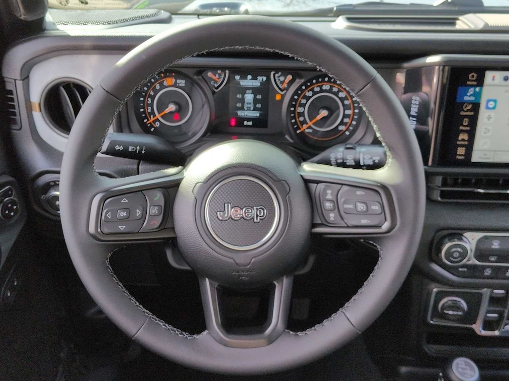 This Jeep comes with:LED Headlamp and Fog Lamp Group (Front LED Fog Lamps and LED Premium Reflector Headlamps), Quick Order Package 22S Sport S (Advanced Brake Assist, Automatic Headlamps, Corning Gorilla Glass, Deep Tint Sunscreen Windows, Enhanced Adaptive Cruise Control, Full Speed Forward Collision Warning Plus, Power Heated Mirrors, Premium Wrapped Steering Wheel, Security Alarm, Sun Visors with Illuminated Vanity Mirrors, and Wheels: 17 x 7.5 Gray), 12.3 Touchscreen Display, 3.45 Overall Top Gear Ratio, 4-Wheel Disc Brakes, 4G LTE Wi-Fi Hot Spot, 8 Speakers, ABS brakes, Air Conditioning, AM/FM radio: SiriusXM with 360L, Apple CarPlay, Apple CarPlay/Android Auto, Aux Battery, Black 3-Piece Hard Top, Brake assist, Compass, Connectivity - US/Canada, Delay-off headlights, Driver door bin, Driver vanity mirror, Dual front impact airbags, Dual front side impact airbags, Electronic Stability Control, For More Info, Call 800-643-2112, Freedom Panel Storage Bag, Front anti-roll bar, Front Bucket Seats, Front Center Armrest w/Storage, Front fog lights, Front reading lights, Google Android Auto, Illuminated entry, Integrated Center Stack Radio, Integrated roll-over protection, Jeep Trail Rated Kit, Low tire pressure warning, Manufacture Statement of Origin, MOPAR All-Weather Floor Mats, No Soft Top, Non-Lock Fuel Cap Without Discriminator, Normal Duty Suspension, Occupant sensing airbag, Outside temperature display, Overhead airbag, Panic alarm, ParkView Rear Back-Up Camera, Passenger door bin, Passenger vanity mirror, Power steering, Power windows, Radio data system, Radio: Uconnect 5 with 12.3 Display, Rear anti-roll bar, Rear reading lights, Rear Window Defroster, Rear Window Wiper/Washer, Remote keyless entry, SiriusXM Radio Service, SiriusXM with 360L, Speed control, Split folding rear seat, Steering wheel mounted audio controls, Stop-Start Dual Battery System, Tachometer, Telescoping steering wheel, Tilt steering wheel, Traction control, Trip computer, Variably intermittent wipers, and Wheels: 17 x 7.5 Black Steel Styled. Prices do not include Protection Package + includes Vehicle Tint at $599, Door Edge Guards at $399, Wheel Locks at $199, PermaPlate at $700, LoJack at $1,199 and Etch at $899. Price does not include $699 Dealer Documentation Fee, taxes, and license fee. Price includes: $1000 - 2026 National Retail Bonus Cash . Exp. 04/30/2026