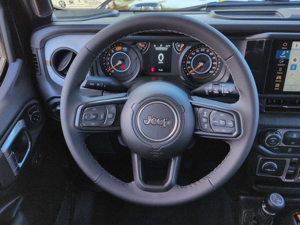 This Jeep comes with:LED Headlamp and Fog Lamp Group (Front LED Fog Lamps and LED Premium Reflector Headlamps), Quick Order Package 24S Sport S (Advanced Brake Assist, Automatic Headlamps, Corning Gorilla Glass, Deep Tint Sunscreen Windows, Enhanced Adaptive Cruise Control, Full Speed Forward Collision Warning Plus, Power Heated Mirrors, Premium Wrapped Steering Wheel, Security Alarm, Sun Visors with Illuminated Vanity Mirrors, and Wheels: 17 x 7.5 Gray), 12.3 Touchscreen Display, 3.45 Overall Top Gear Ratio, 4-Wheel Disc Brakes, 4G LTE Wi-Fi Hot Spot, 8 Speakers, ABS brakes, Air Conditioning, AM/FM radio: SiriusXM with 360L, Apple CarPlay, Apple CarPlay/Android Auto, Aux Battery, Black 3-Piece Hard Top, Brake assist, Compass, Connectivity - US/Canada, Delay-off headlights, Driver door bin, Driver vanity mirror, Dual front impact airbags, Dual front side impact airbags, Electronic Stability Control, For More Info, Call 800-643-2112, Freedom Panel Storage Bag, Front anti-roll bar, Front Bucket Seats, Front Center Armrest w/Storage, Front fog lights, Front reading lights, Google Android Auto, Illuminated entry, Integrated Center Stack Radio, Integrated roll-over protection, Jeep Trail Rated Kit, Low tire pressure warning, Manufacture Statement of Origin, MOPAR All-Weather Floor Mats, No Soft Top, Non-Lock Fuel Cap Without Discriminator, Normal Duty Suspension, Occupant sensing airbag, Outside temperature display, Overhead airbag, Panic alarm, ParkView Rear Back-Up Camera, Passenger door bin, Passenger vanity mirror, Power steering, Power windows, Radio data system, Radio: Uconnect 5 with 12.3 Display, Rear anti-roll bar, Rear reading lights, Rear Window Defroster, Rear Window Wiper/Washer, Remote keyless entry, SiriusXM Radio Service, SiriusXM with 360L, Speed control, Split folding rear seat, Steering wheel mounted audio controls, Stop-Start Dual Battery System, Tachometer, Telescoping steering wheel, Tilt steering wheel, Traction control, Trip computer, Variably intermittent wipers, and Wheels: 17 x 7.5 Black Steel Styled. Prices do not include Protection Package + includes Vehicle Tint at $599, Door Edge Guards at $399, Wheel Locks at $199, PermaPlate at $700, LoJack at $1,199 and Etch at $899. Price does not include $699 Dealer Documentation Fee, taxes, and license fee. Price includes: $1000 - 2026 National Retail Bonus Cash . Exp. 04/30/2026