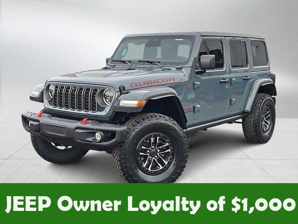 This Jeep comes with:Quick Order Package 24Y Rubicon X (12.3 Touchscreen Display, 4G LTE Wi-Fi Hot Spot, Acoustic Front Seat Area Carpet, Acoustic Laminated Front Door Glass, Alpine Premium Audio System, Apple CarPlay, Auto High Beam Headlamp Control, Auto-Dimming Rear-View Mirror, Blind Spot and Cross Path Detection, Body Color 3-Piece Hard Top, Body Color Rubicon Highline Flare, Connected Travel and Traffic Services, Connectivity - US/Canada, Freedom Panel Storage Bag, Google Android Auto, HD Radio, Heated Front Seats, Heated Steering Wheel, Integrated Off-Road Camera, Integrated Voice Command with Bluetooth, Leather Wrapped Park Brake Handle, Leather Wrapped Shift Knob, MOPAR Hardtop Headliner, Nappa Leather Seats, No Soft Top, ParkSense Rear Park Assist System, Power 4-Way Driver Lumbar Adjust, Power 4-Way Passenger Lumbar Adjust, Power Adjust 8-Way Driver Seat, Power Adjust 8-Way Front Passenger Seat, Premium Door Trim Panel, Radio: Uconnect 5 Navigation with 12.3 Display, Rear Window Defroster, Rear Window Wiper/Washer, SiriusXM with 360L, Steel Front Bumper, Steel Rear Bumper, and Universal Garage Door Opener), Trailer Tow and Auxiliary Switch Group (Auxiliary Switches and Class II Receiver Hitch), Trailer Tow Prep Package, 35 Tire Suspension, 4-Wheel Disc Brakes, 8 Speakers, ABS brakes, Air Conditioning, Alloy wheels, AM/FM radio: SiriusXM with 360L, Apple CarPlay/Android Auto, Automatic temperature control, Aux Battery, Brake assist, Cloth Low-Back Bucket Seats, Compass, Delay-off headlights, Driver door bin, Driver vanity mirror, Dual front impact airbags, Dual front side impact airbags, Electronic Stability Control, Emergency communication system: Jeep Connect, For More Info, Call 800-643-2112, Front anti-roll bar, Front Bucket Seats, Front Center Armrest w/Storage, Front dual zone A/C, Front fog lights, Front License Plate Bracket, Front reading lights, Fully automatic headlights, Heated door mirrors, Illuminated entry, Integrated Center Stack Radio, Integrated roll-over protection, Jeep Trail Rated Kit, Low tire pressure warning, MOPAR All-Weather Floor Mats, MOPAR Hinge-Gate Reinforcement, Non-Lock Fuel Cap Without Discriminator, Occupant sensing airbag, Outside temperature display, Overhead airbag, Panic alarm, ParkView Rear Back-Up Camera, Passenger door bin, Passenger vanity mirror, Performance Suspension, Power door mirrors, Power steering, Power windows, Radio data system, Radio: Uconnect 5 with 12.3 Display, Rear anti-roll bar, Rear reading lights, Remote keyless entry, Security system, SiriusXM Radio Service, Speed control, Split folding rear seat, Steering wheel mounted audio controls, Stop-Start Dual Battery System, Tachometer, Telescoping steering wheel, Tilt steering wheel, Traction control, Trip computer, Variably intermittent wipers, Voltmeter, Wheels: 17 x 7.5 Machined/Painted Black, and Wheels: 17 x 8 Machined with Black Pockets. Prices do not include Protection Package + includes Vehicle Tint at $599, Door Edge Guards at $399, Wheel Locks at $199, PermaPlate at $700, LoJack at $1,199 and Etch at $899. Price does not include $699 Dealer Documentation Fee, taxes, and license fee.