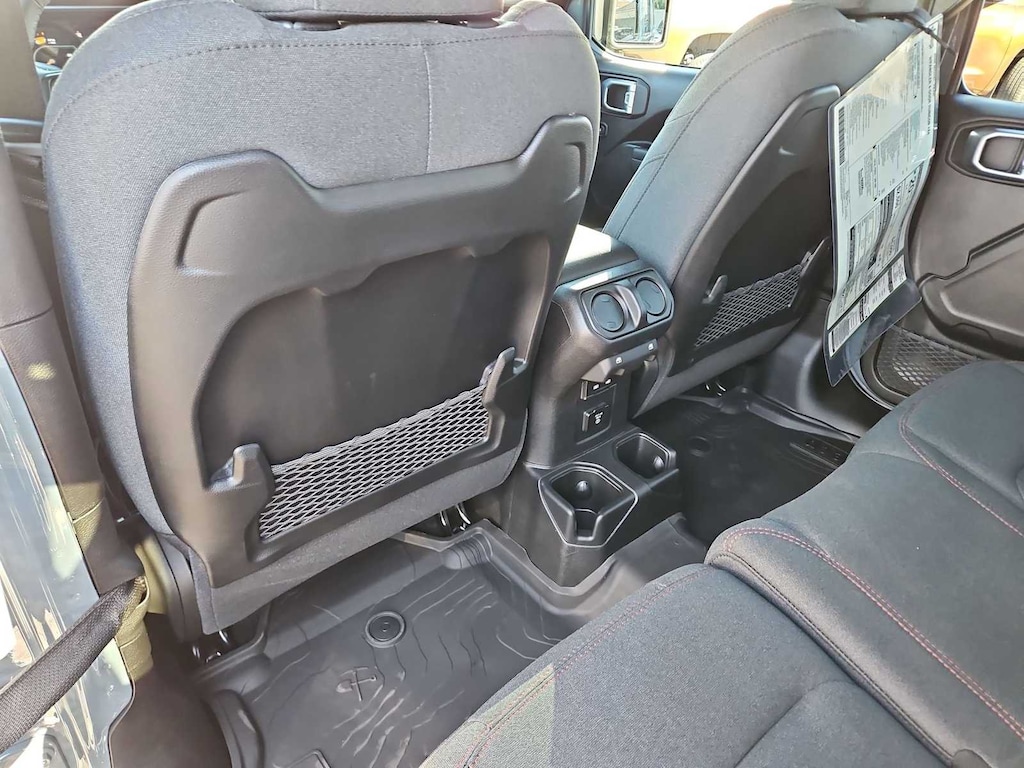 This Jeep comes with:Quick Order Package 24R Rubicon, Technology Group (12.3 Touchscreen Display, 4G LTE Wi-Fi Hot Spot, Apple CarPlay, Auto-Dimming Rear-View Mirror, Connected Travel and Traffic Services, Connectivity - US/Canada, For More Info, Call 800-643-2112, Google Android Auto, GPS Navigation, HD Radio, Integrated Center Stack Radio, Integrated Off-Road Camera, Integrated Voice Command with Bluetooth, Radio: Uconnect 5 Navigation with 12.3 Display, SiriusXM Radio Service, and SiriusXM with 360L), 4-Wheel Disc Brakes, 4.10 Rear Axle Ratio, 8 Speakers, ABS brakes, Air Conditioning, Alloy wheels, Alpine Premium Audio System, AM/FM radio: SiriusXM with 360L, Apple CarPlay/Android Auto, Automatic temperature control, Aux Battery, Auxiliary Switches, Body Color 3-Piece Hard Top, Body Color Rubicon Highline Flare, Brake assist, Class II Receiver Hitch, Cloth Low-Back Bucket Seats, Compass, Delay-off headlights, Driver door bin, Driver vanity mirror, Dual front impact airbags, Dual front side impact airbags, Electronic Stability Control, Emergency communication system: Jeep Connect, Freedom Panel Storage Bag, Front anti-roll bar, Front Bucket Seats, Front Center Armrest w/Storage, Front dual zone A/C, Front fog lights, Front License Plate Bracket, Front reading lights, Fully automatic headlights, Heated door mirrors, Illuminated entry, Integrated roll-over protection, Jeep Trail Rated Kit, Low tire pressure warning, MOPAR All-Weather Floor Mats, No Soft Top, Non-Lock Fuel Cap Without Discriminator, Occupant sensing airbag, Outside temperature display, Overhead airbag, Panic alarm, ParkView Rear Back-Up Camera, Passenger door bin, Passenger vanity mirror, Performance Suspension, Power door mirrors, Power steering, Power windows, Radio data system, Radio: Uconnect 5 with 12.3 Display, Rear anti-roll bar, Rear reading lights, Rear Window Defroster, Rear Window Wiper/Washer, Remote keyless entry, Security system, Speed control, Split folding rear seat, Steering wheel mounted audio controls, Stop-Start Dual Battery System, Tachometer, Telescoping steering wheel, Tilt steering wheel, Traction control, Trip computer, Variably intermittent wipers, Voltmeter, and Wheels: 17 x 7.5 Machined/Painted Black. Prices do not include Protection Package + includes Vehicle Tint at $599, Door Edge Guards at $399, Wheel Locks at $199, PermaPlate at $700, LoJack at $1,199 and Etch at $899. Price does not include $699 Dealer Documentation Fee, taxes, and license fee.