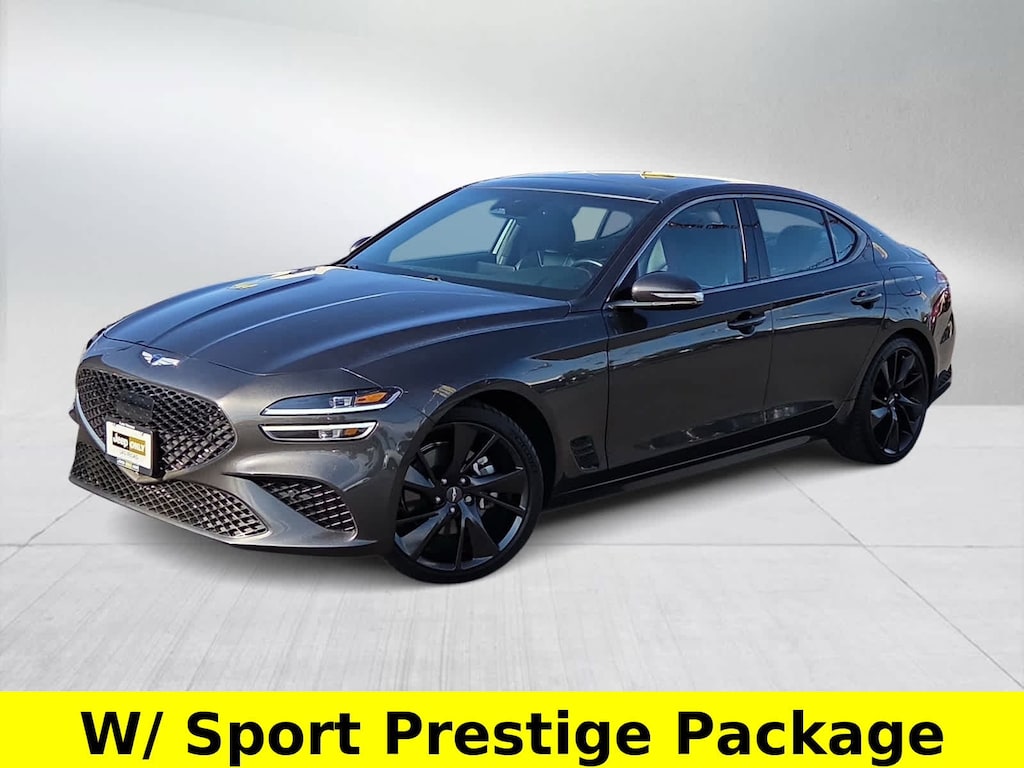 The 2023 Genesis G70 2.0T is a luxury compact sedan that blends athletic performance with upscale refinement. Powered by a 2.0L turbocharged inline-4 engine producing 252 horsepower and 260 lb-ft of torque, it offers quick acceleration and smooth handling, whether you choose the standard rear-wheel drive or optional all-wheel drive. Paired with an 8-speed automatic transmission, the G70 delivers a responsive and engaging driving experience, with fuel efficiency rated at up to 31 mpg on the highway. Its sleek exterior design features Genesis signature crest grille, LED lighting, and bold lines that convey both elegance and sportiness.
