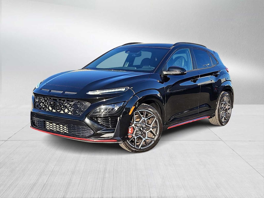 Ultra Black 2022 Hyundai Kona N FWD N 8-Speed Wet Dual Clutch 2.0L I4 DGI DOHC 16V Turbocharged ABS brakes, Alloy wheels, Electronic Stability Control, Heated door mirrors, Heated front seats, Illuminated entry, Low tire pressure warning, Navigation System, Remote keyless entry, Traction control.