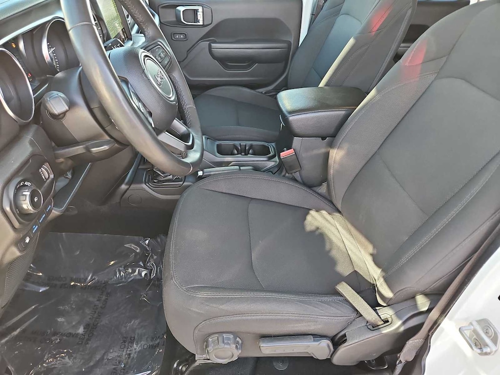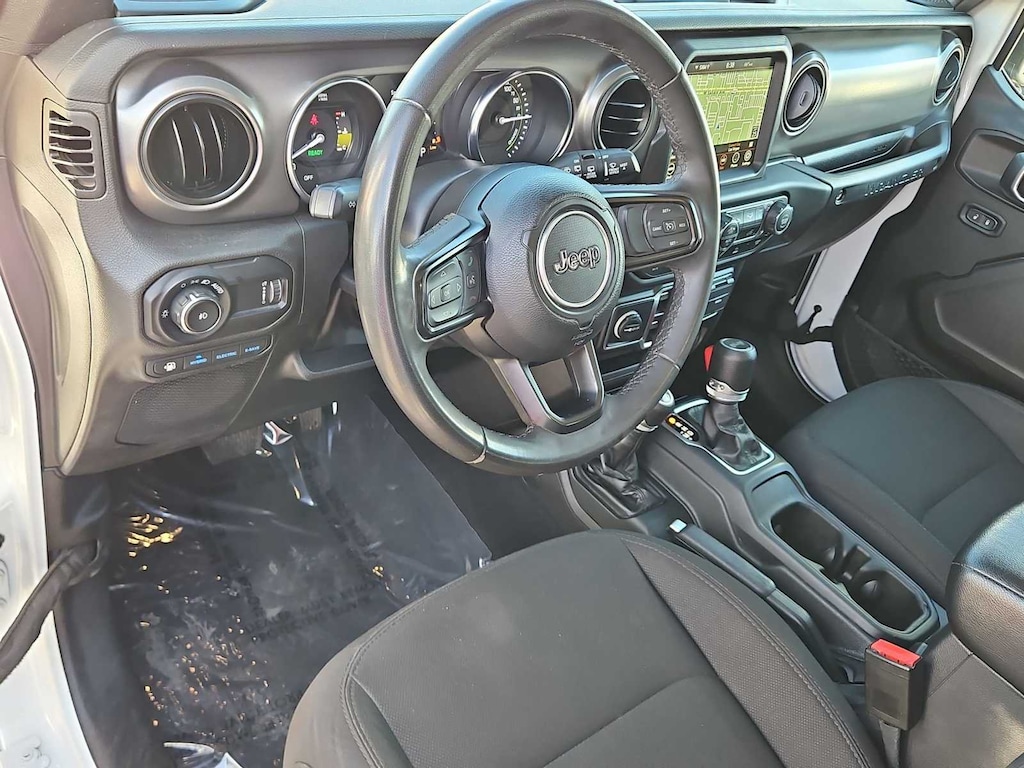 Built with the Willys off-road package, this Wrangler features all-terrain tires, rock rails, and enhanced suspension components, giving you the confidence to tackle dirt roads, trails, or everyday driving with ease. The 4-door Unlimited layout offers plenty of room for passengers and cargo, while removable doors and top panels let you enjoy that classic open-air Jeep experience.