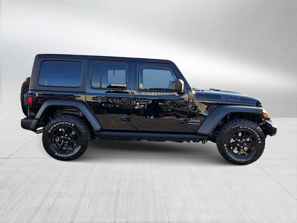 Black Clearcoat 2023 Jeep Wrangler Willys 4xe 4WD 8-Speed Automatic 2.0L I4 DOHC 2.0L I4 DOHC, ABS brakes, Alloy wheels, Compass, Electronic Stability Control, Front dual zone A/C, Heated door mirrors, Illuminated entry, Low tire pressure warning, ParkView Rear Back-Up Camera, Passenger door bin, Remote keyless entry, Traction control.